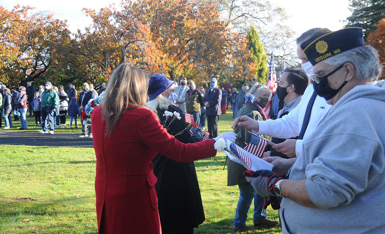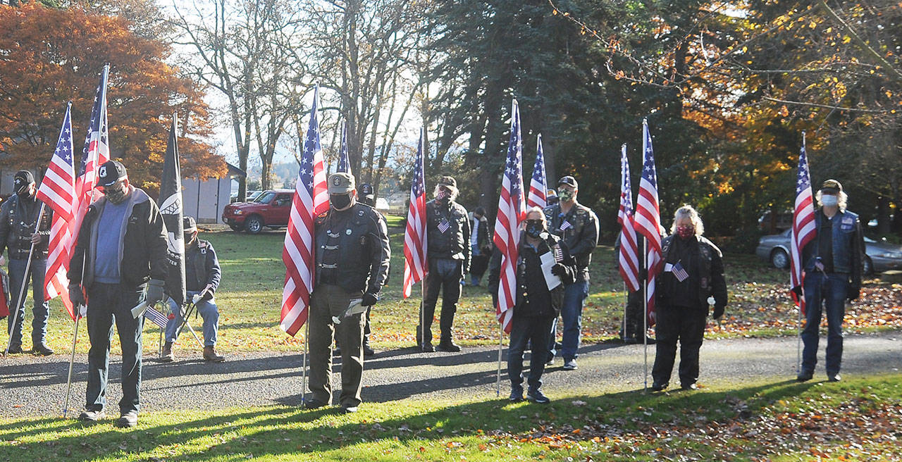 The words from Paul Renick, Commander of the American Legion Post 62, highlighted a unique Veterans Day ceremony held at the historic park near downtown Sequim. With many community celebrations canceled or moved online because of statewide COVID-19 health restrictions, the event drew veterans and non-veterans alike as local advocates lauded veterans’ efforts.