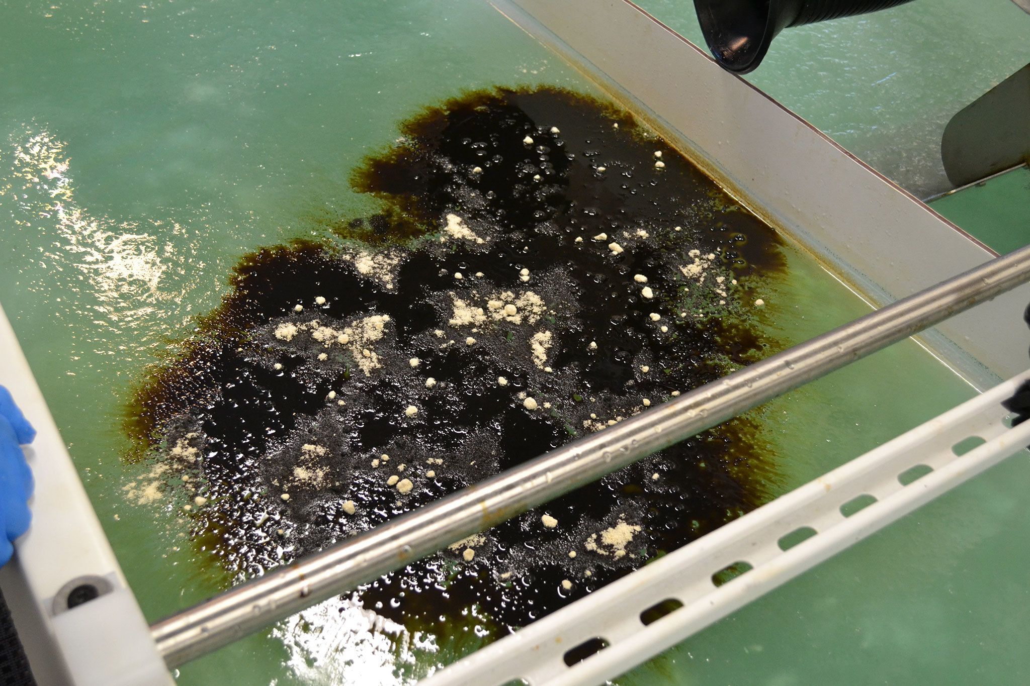 “[The aggregator] promotes microbial growth to help break it down,” Bonheyo said. “It can remain on the water for up to four months and sunlight, oxygen and micro-organisms will help break down the oil.”