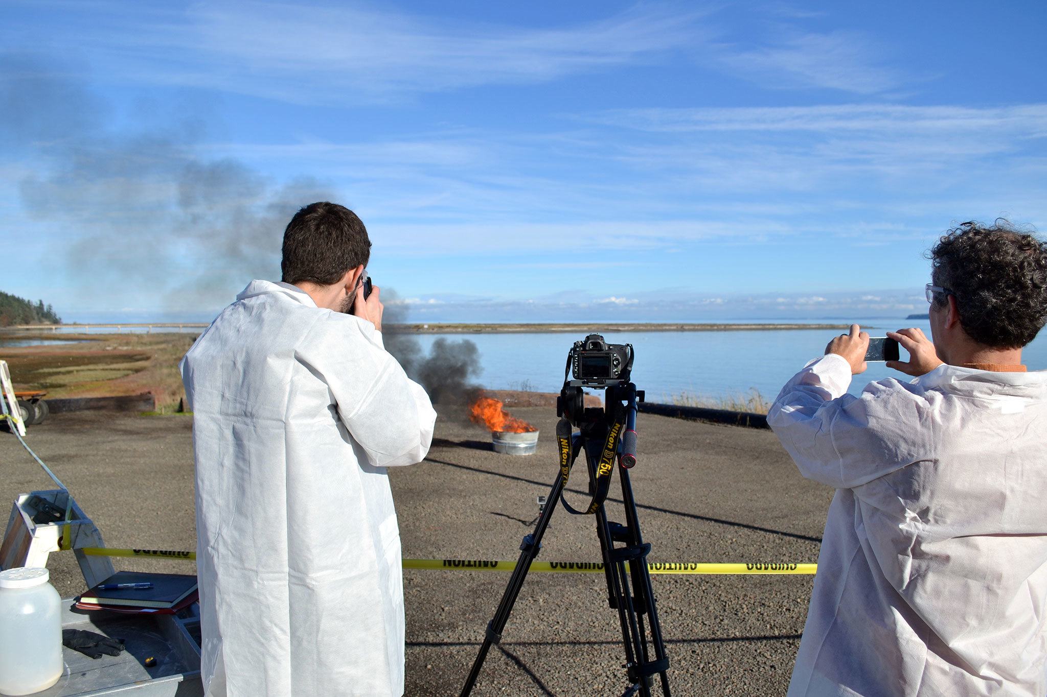 In October, scientists performed large-scale tests of the aggregator at the Joint Marine Test Facility in Mobile, Ala. It and Sequim are one of four labs in the nation where oil burn experiments at this level are done, Bonheyo said.
