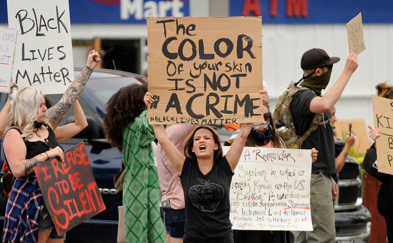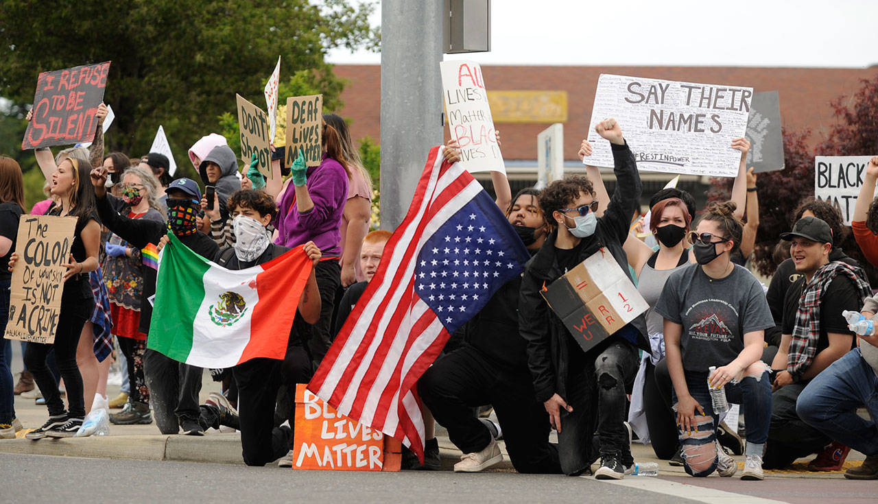 An estimated 300 people gather at Washington Street and Sequim Avenue and other Sequim street corners Wednesday, June 3, 2020, to protest racism, the death of George Floyd and police brutality.