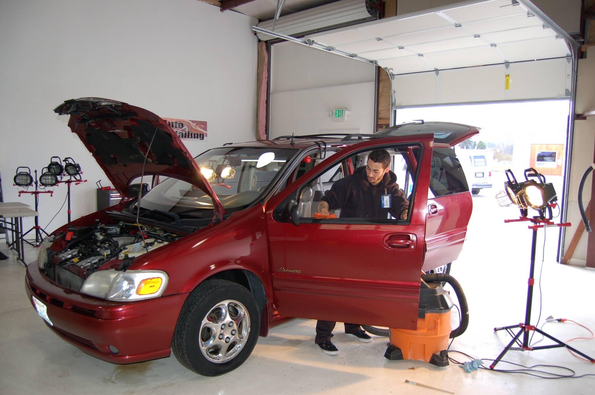 Detailers Jesse Bailey and Chris Babcock volunteered their time last week to wash and condition the inside of the van, clean its instruments and wax and touch up the paint on the outside.