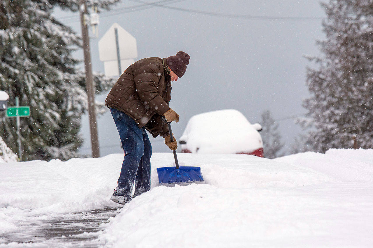 He said the second storm is possible Sunday night into Monday, bringing a few more inches of snow to areas along the Strait of Juan de Fuca, but he said it was too early to predict specifics.