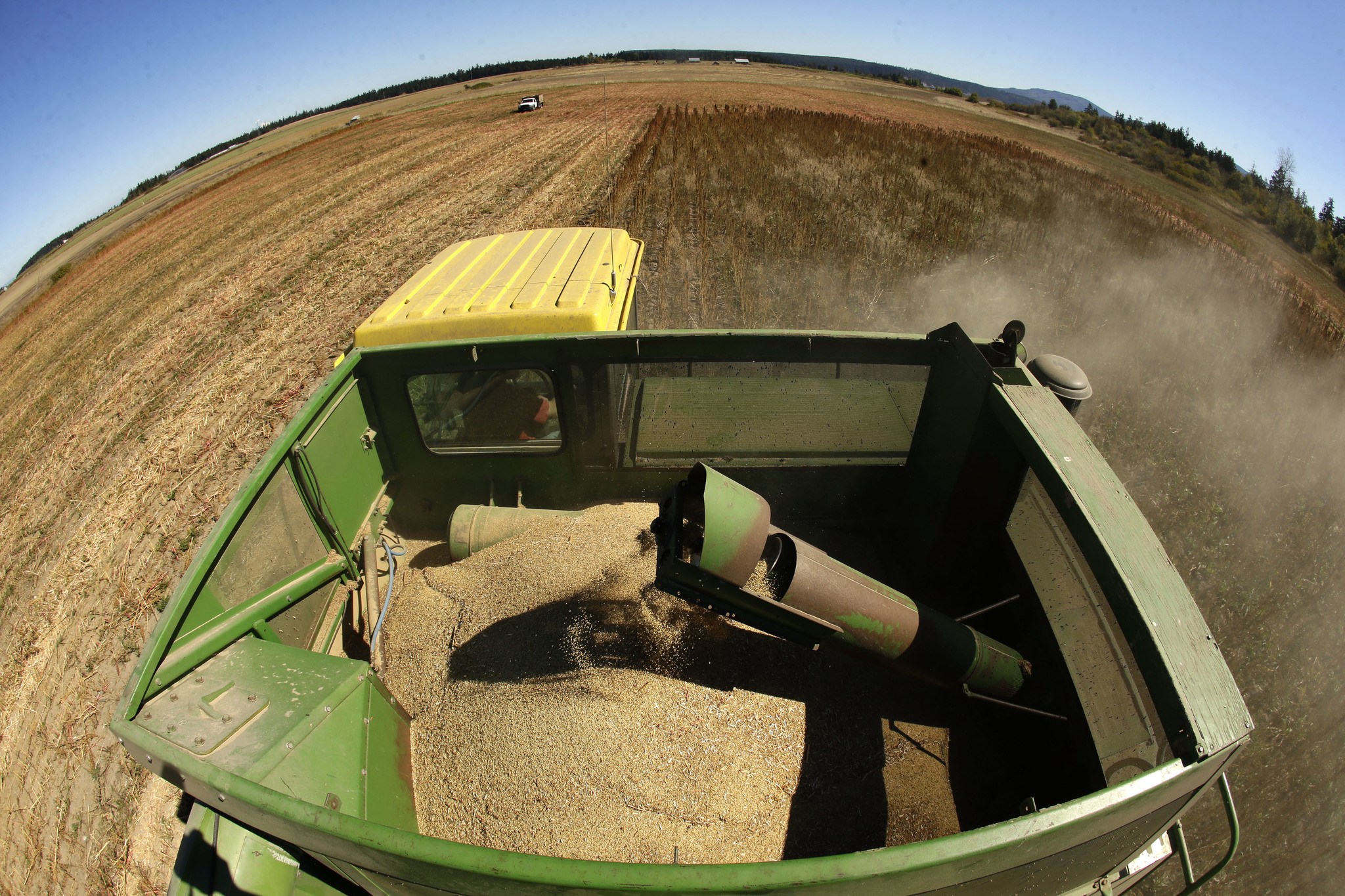 “It’s a beautiful crop,” Huber said as he surveyed his combine grinding the plants and spitting out the seeds. He chose a variety called Redhead, which turned his field lipstick-red for a couple of weeks before harvest.