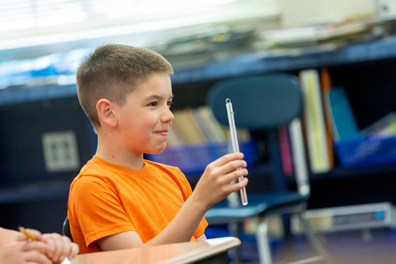 As Freeman showed off his washable straw there were several “oohs” and “aahs” from his classmates and from Chapman.