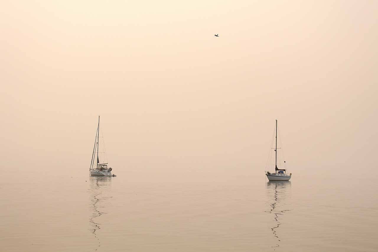 While smoke persisted, the Peninsula briefly saw patches of blue sky and bright sunshine Tuesday. In Port Townsend on Wednesday, a vague outline of islands across the bay could be seen for the first time since late last week.