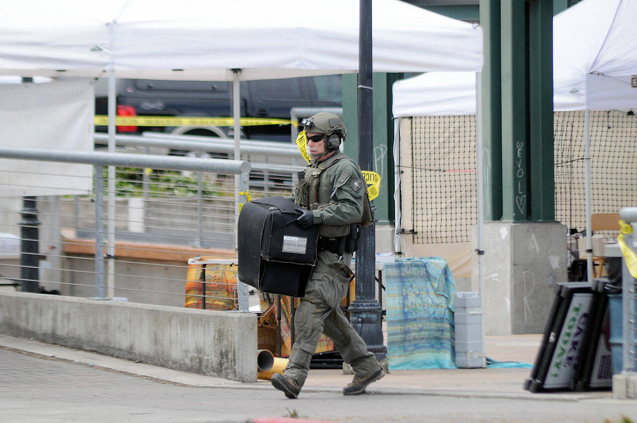 The Washington State Patrol bomb squad arrived from Bremerton early Saturday afternoon and took the package to a quarry to examine it, said Chief Brian Smith of the Port Angeles Police Department.