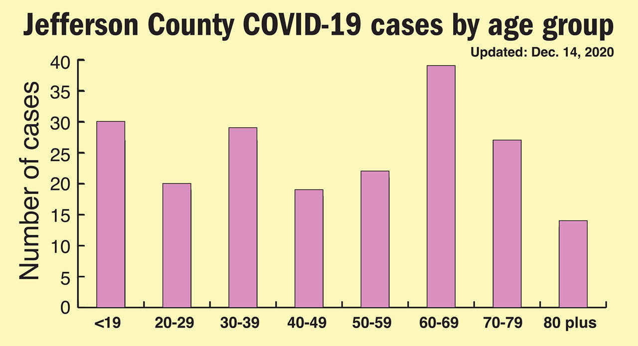 Jefferson County had three new cases Friday and none reported Saturday. That gives Jefferson County 202 total cases since March with 10 active cases and an infection rate of 94 per 100,000. That is still in the high- risk category, but down from more than 150 per 100,000 in November.