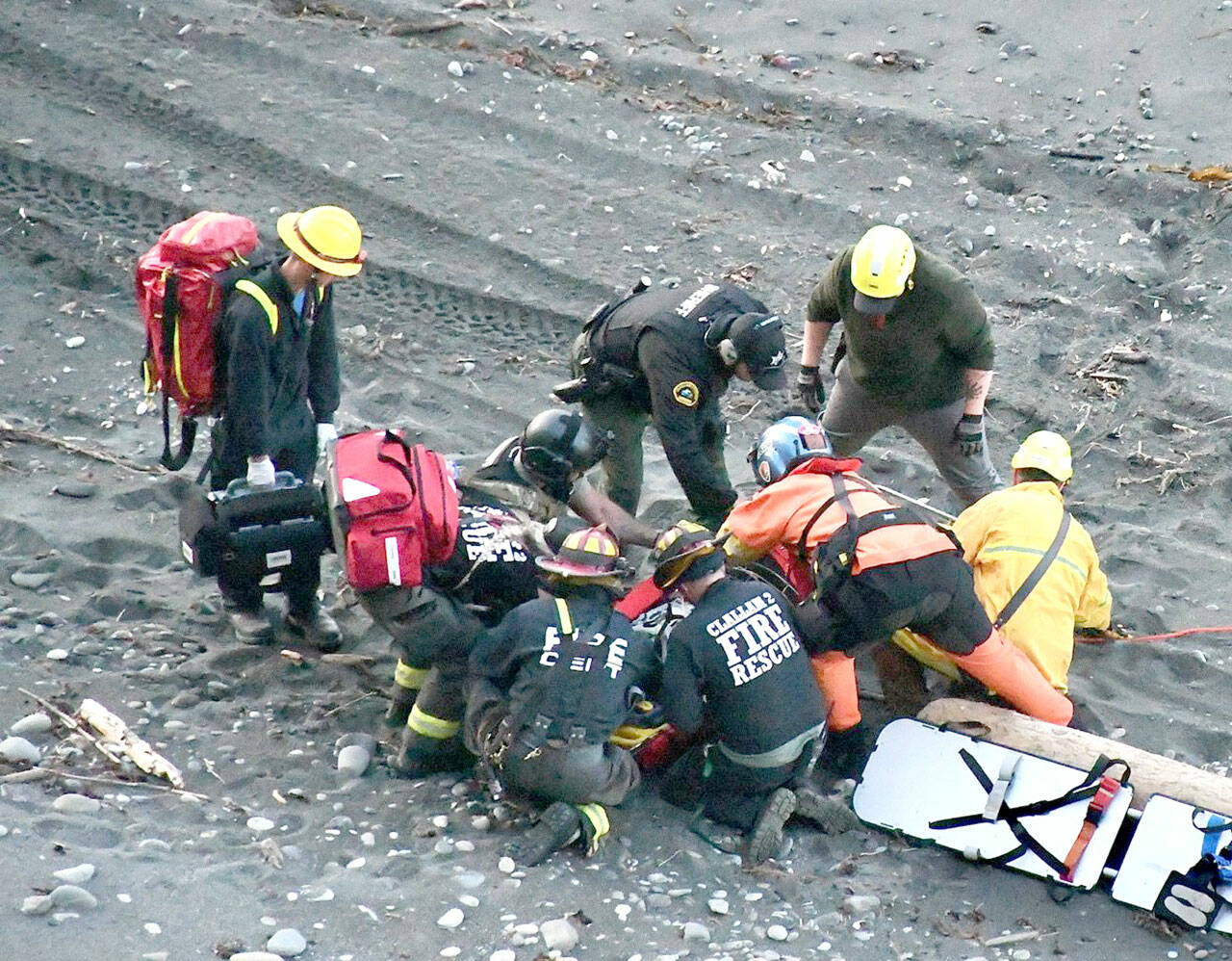 Justin Grider, Clallam 2 Fire-Rescue Deputy Chief, said the district’s rope rescue team was dispatched and mutual aid was requested from the Clallam County Sheriff’s Office, Port Angeles Police Department and U.S. Coast Guard.