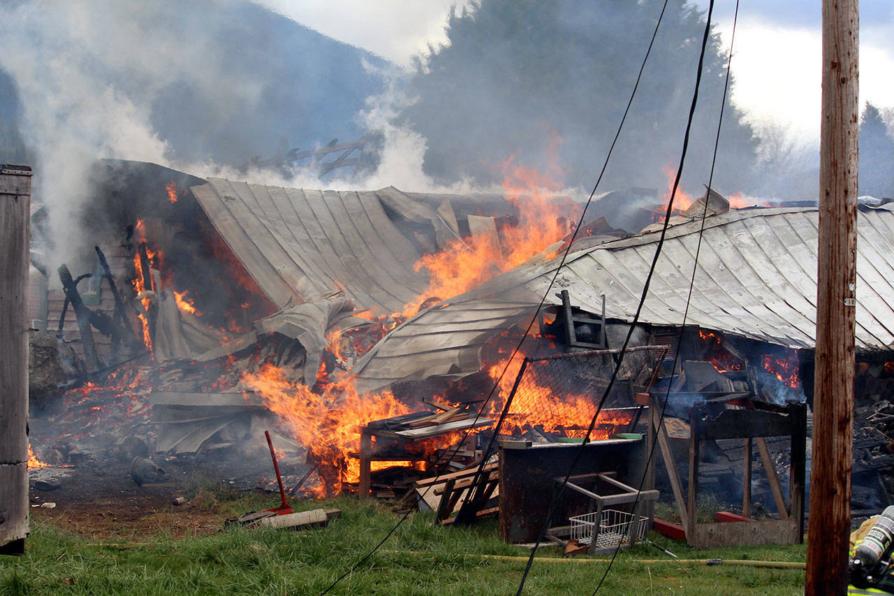 No one was injured in the fire. About $80,000 worth of damage was done to the house and property, said Quilcene Fire Chief Tim McKern, who described the structure as a total loss.