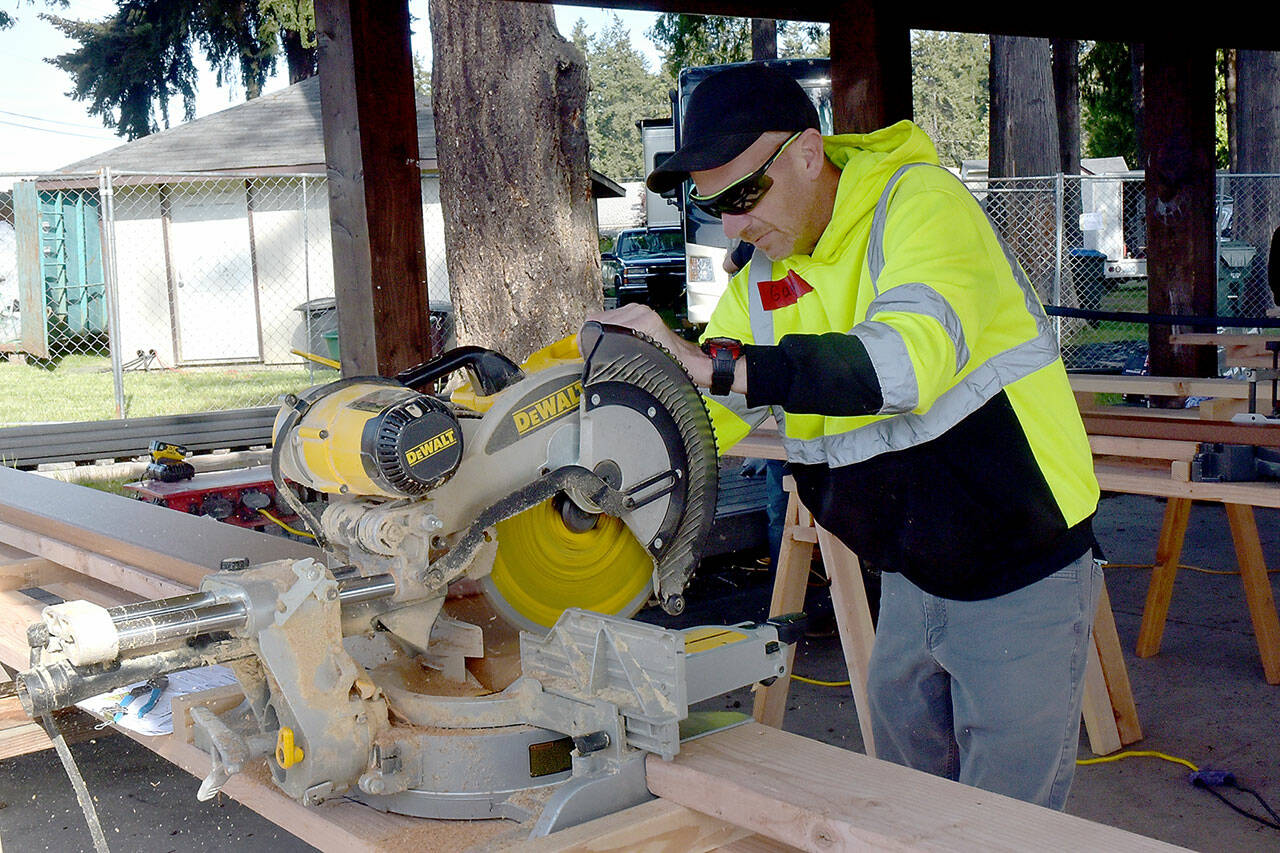 As volunteers swarmed over the playground site Wednesday morning, moving materials, checking in parts and cluing into the nuances of the build, Dream Playground board member Tim Tucker, who also serves as operational manager for the Port Angeles Parks & Recreation department, took a moment to marvel at the effort.