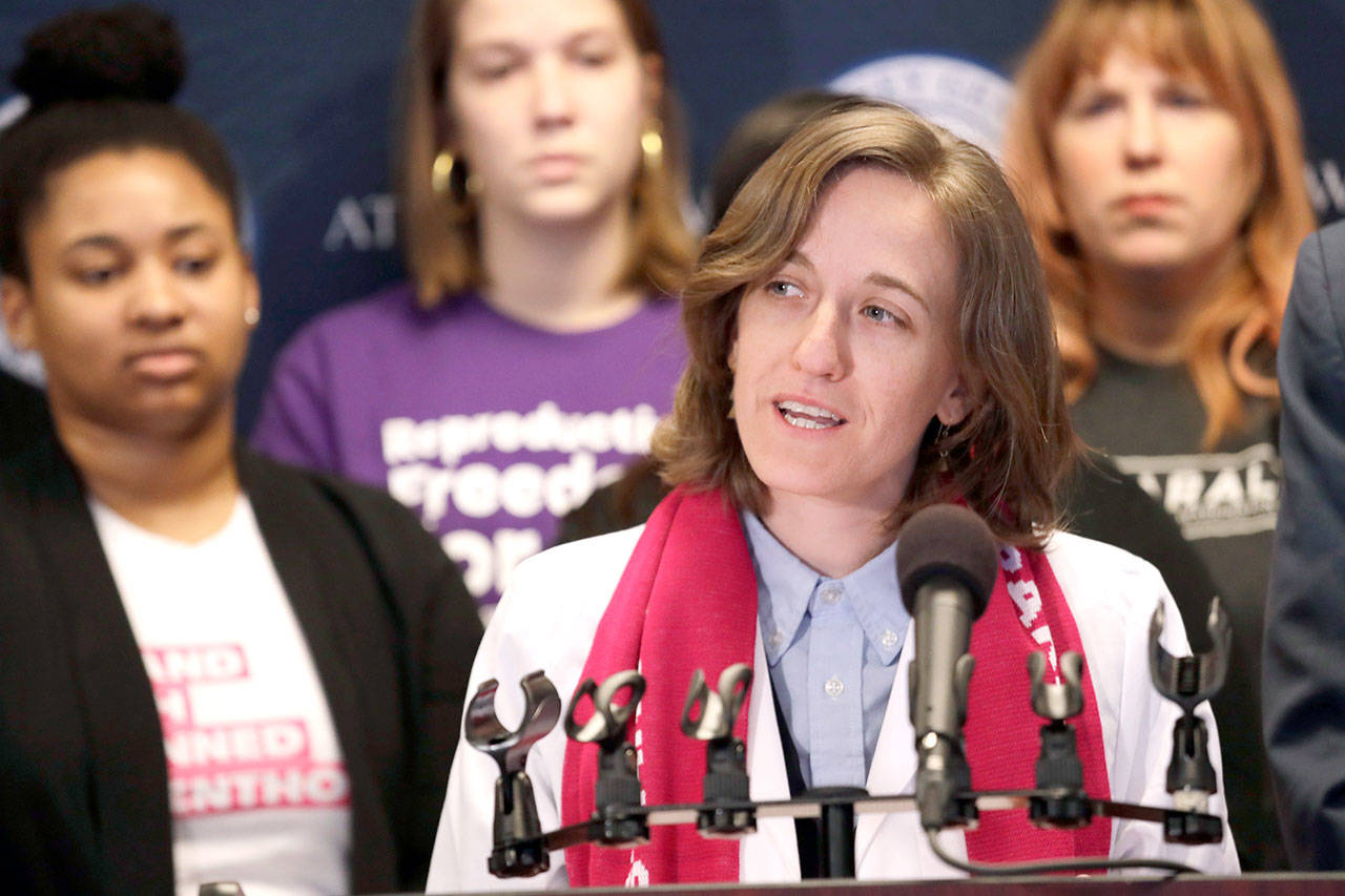 Erin Berry, Washington state medical director of Planned Parenthood of the Great Northwest and the Hawaiian Islands, was one of many advocates who joined Ferguson at his news conference.