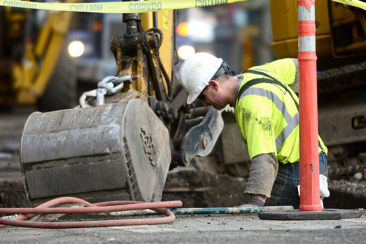 Construction on the $2.7 million Water Street Enhancement Project began Jan. 2. The project runs from the Port Townsend ferry landing and along Water Street to Taylor Street. The project, due to be finished in June, will move utilities underground, revamp the sidewalks and replace the 80-year-old sewer lines running under Water Street.