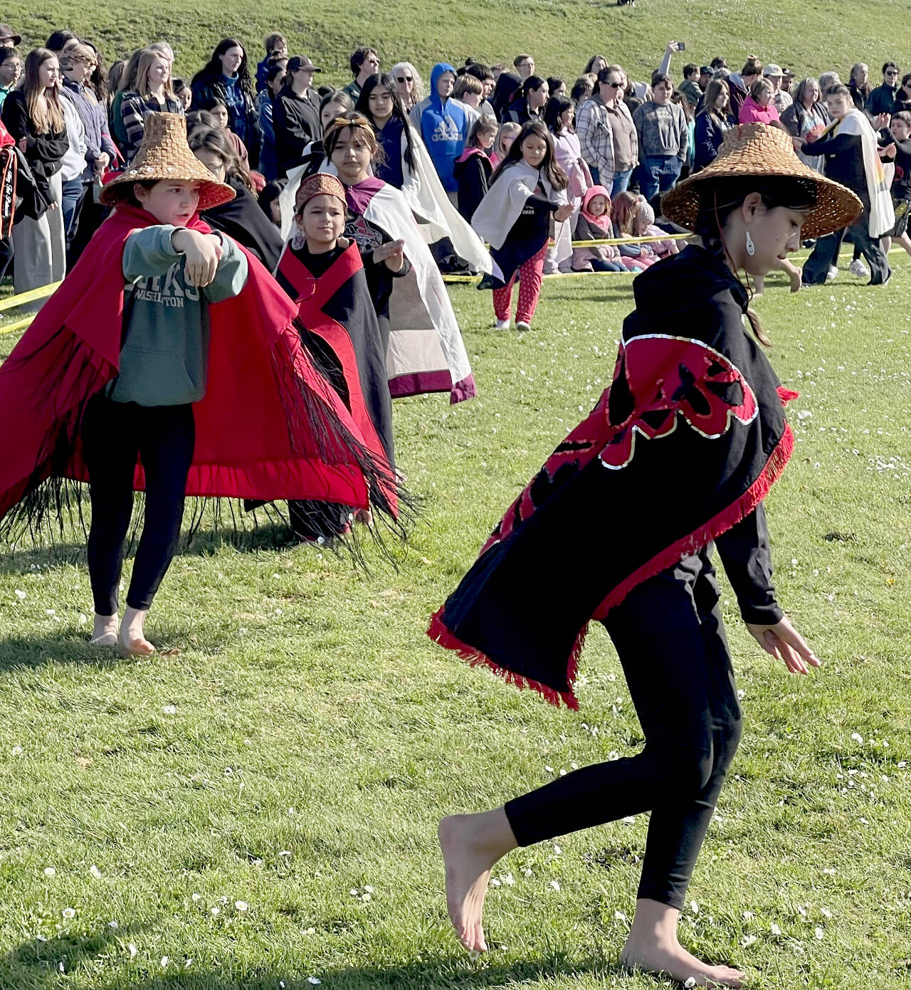 On Friday, Quileute Tribal School students performed the annual Welcoming the Whales ceremony at First Beach in La Push under sunny skies and before a large crowd.
