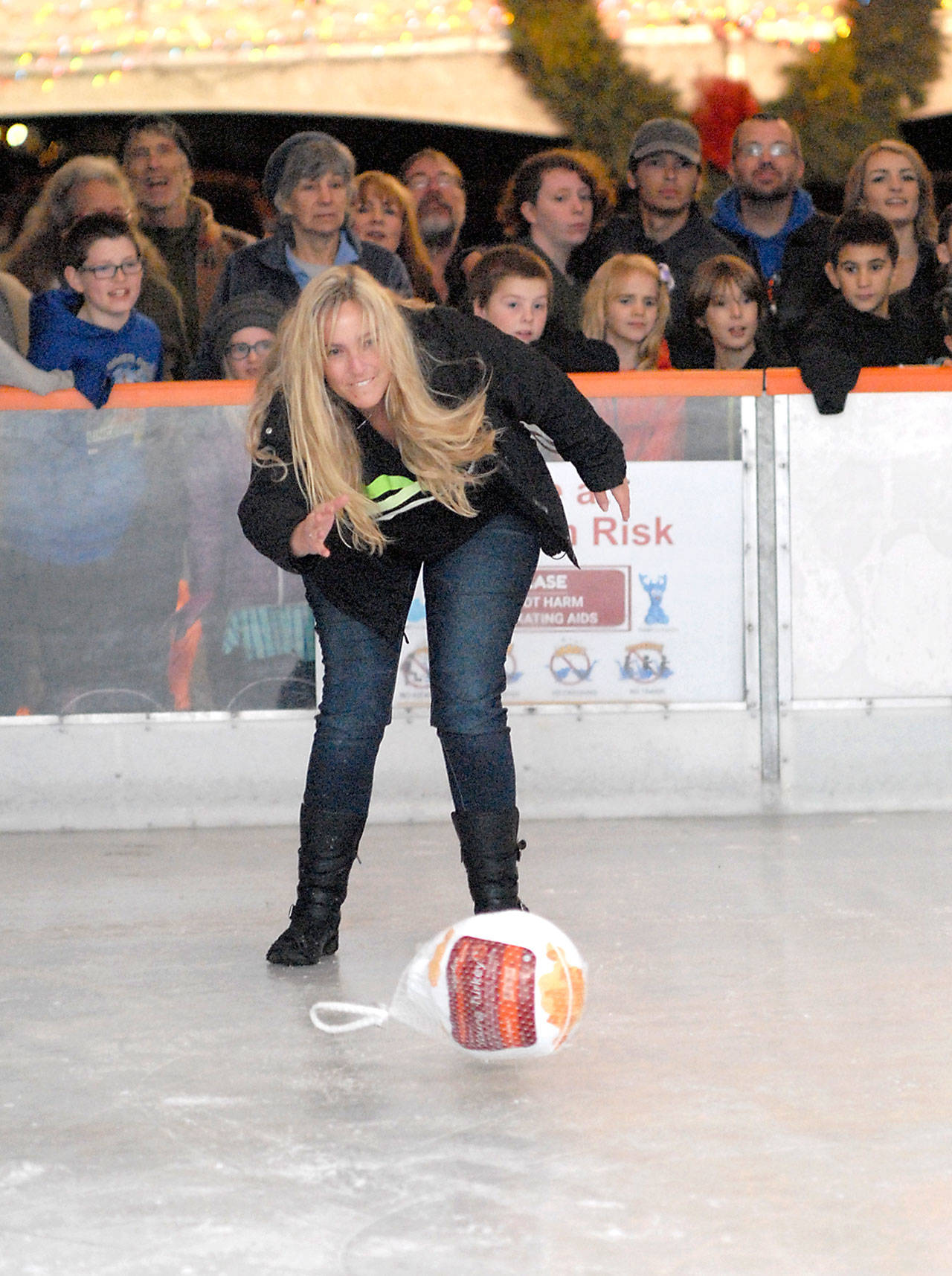 The festive ceremony featured Santa Claus, Frosty the Snowman, singles and doubles figure skating demonstrations, a hockey demonstration and turkey curling.