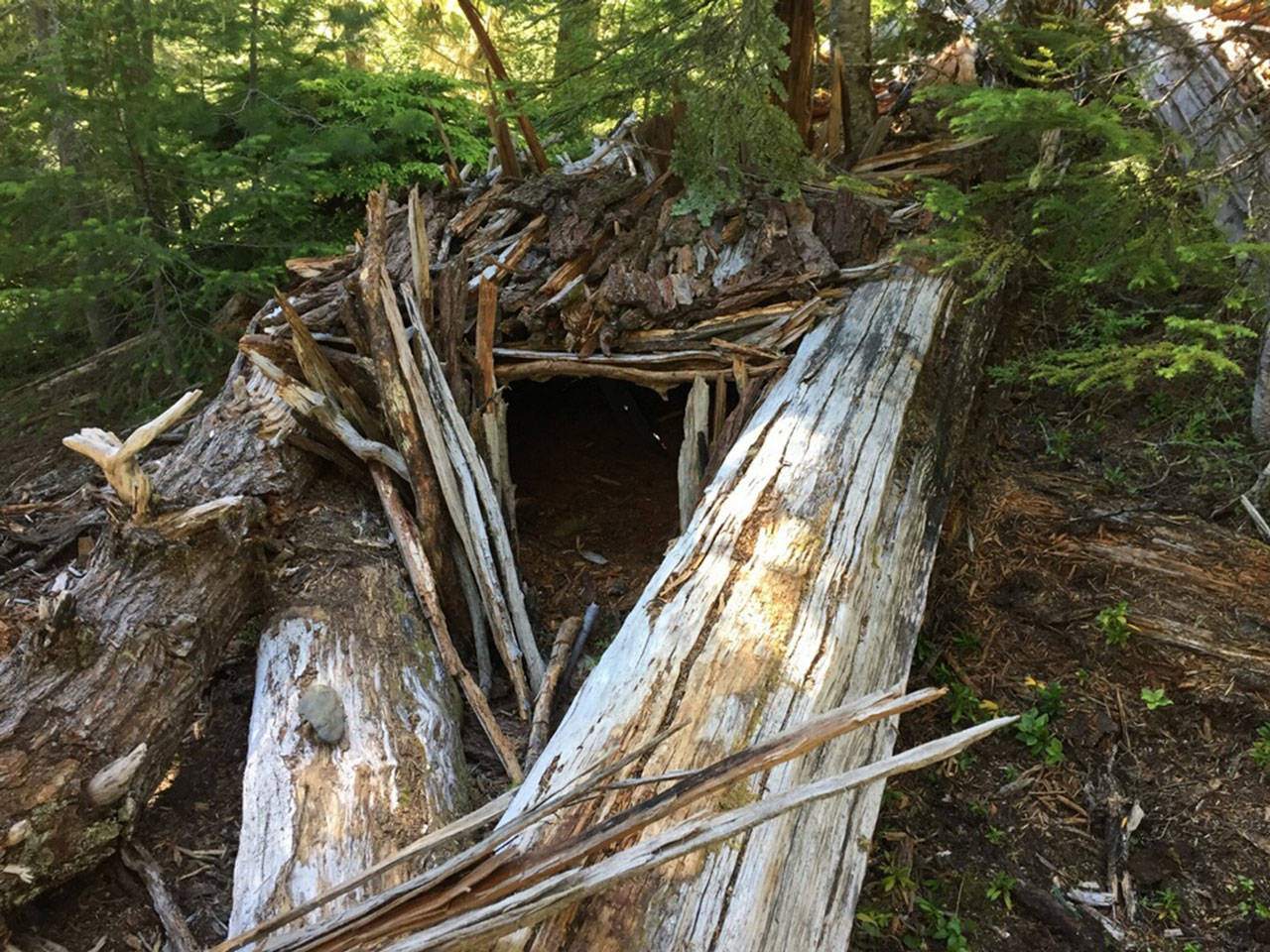 She used twigs and logs to build herself a shelter, using moss and other things she found for the roof.