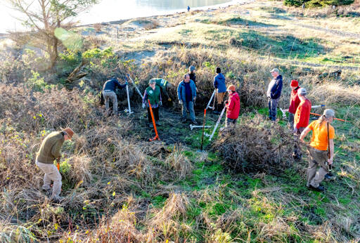 Sixty-four volunteers participated in the removal of non-native beach grasses.