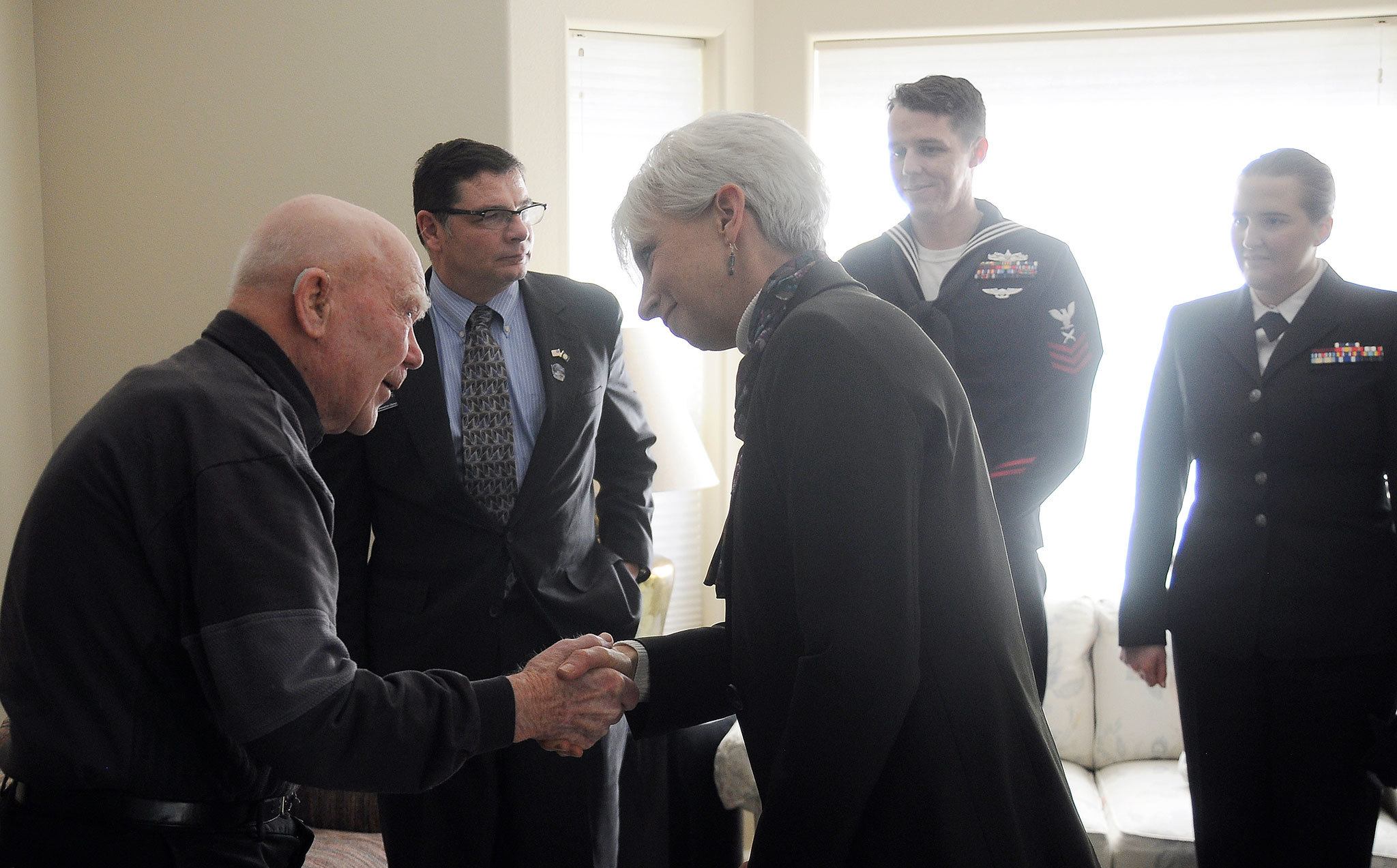 Two Pearl Harbor veterans who call Sequim home received unexpected tributes in early January from U.S. Navy representatives.