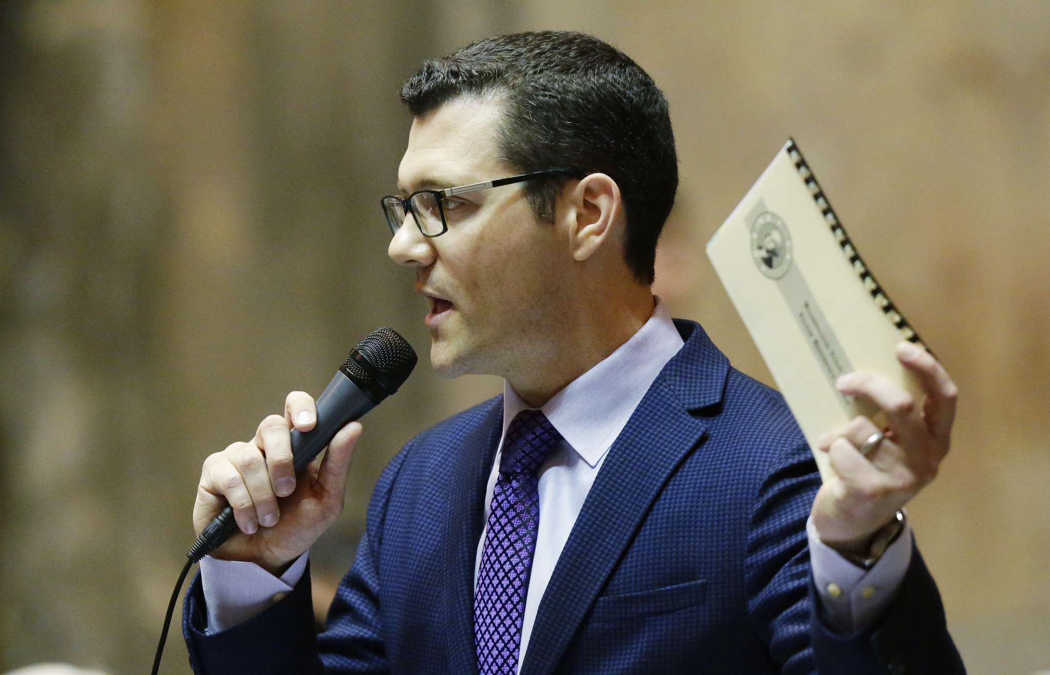 Sen. Joe Fain, the chamber’s majority floor leader, was the sole Republican on the floor during Friday’s procedural fight.