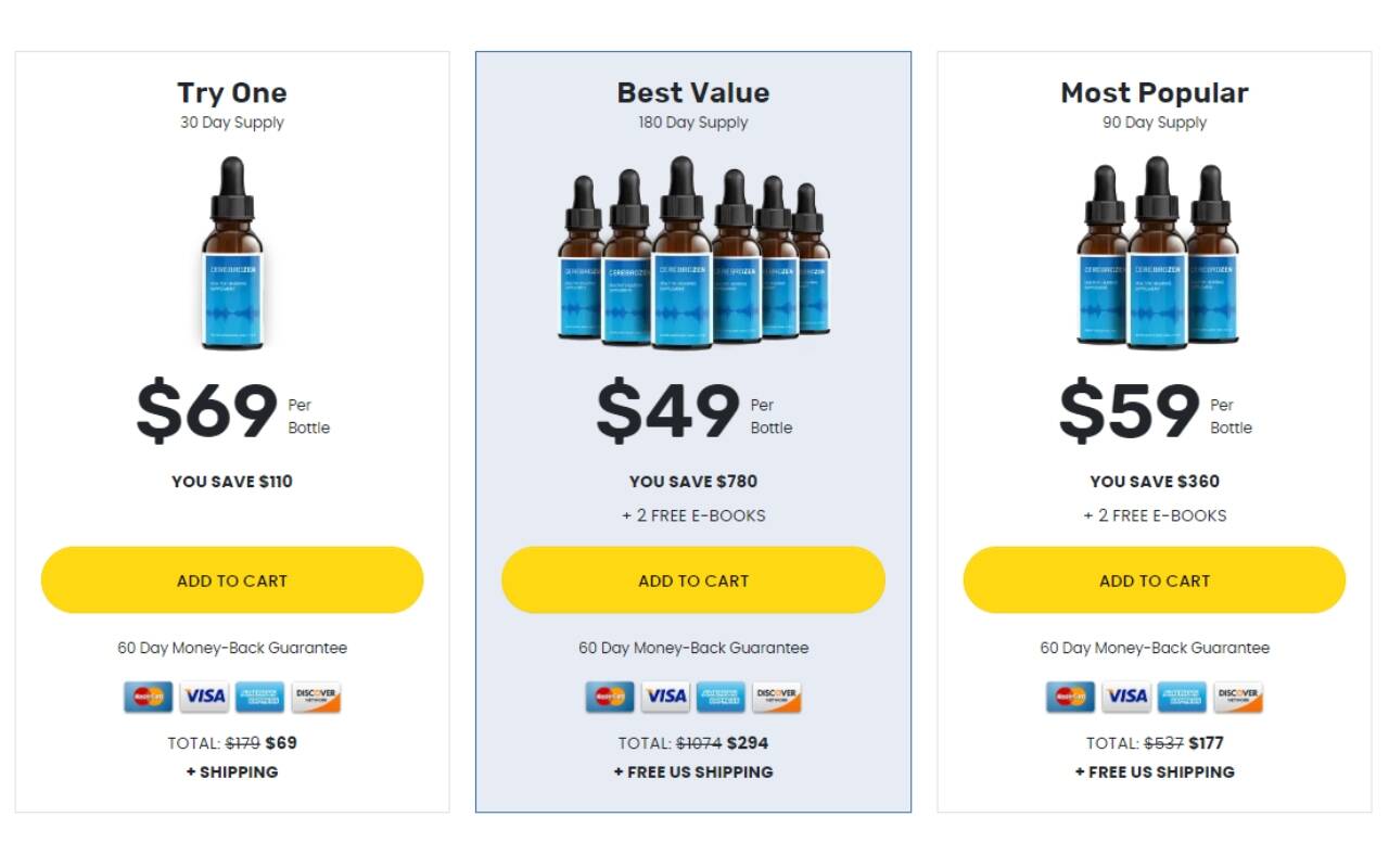 Choose the option that best suits your needs and start your journey towards better hearing support and all-day energy with CEREBROZEN. Enjoy significant savings and the assurance of a money-back guarantee with every purchase.