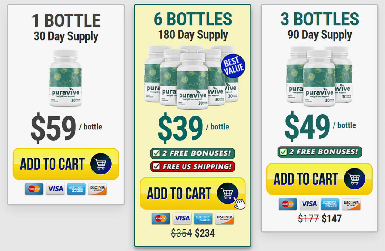 Puravive offers a range of options for purchasing their premium supplement, each tailored to meet different needs and budgets. Customers can start by purchasing one bottle of the Puravive supplement for just $59, plus the cost of shipping. For those looking to stock up and save, the three-bottle package is available for $147. This package not only includes three bottles of the supplement but also comes with free bonuses. The best value option is the six-bottle package, offered at $234. Customers opting for this package enjoy not only free shipping but also receive enticing free bonuses along with their purchase.