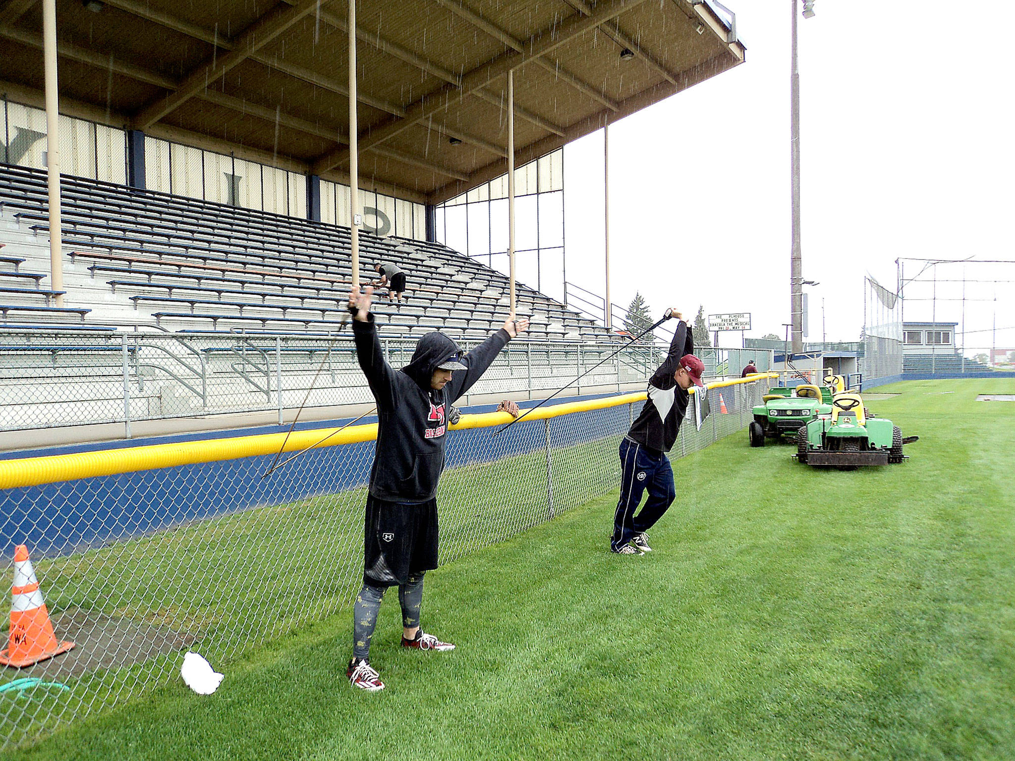 The inaugural season of the Port Angeles Lefties begins tonight at Civic Field when the nearby Victoria HarbourCats come to town via the MV Coho. Crews were out Tuesday braving at times heavy rain to get the infield and grass ready for tonight’s game.