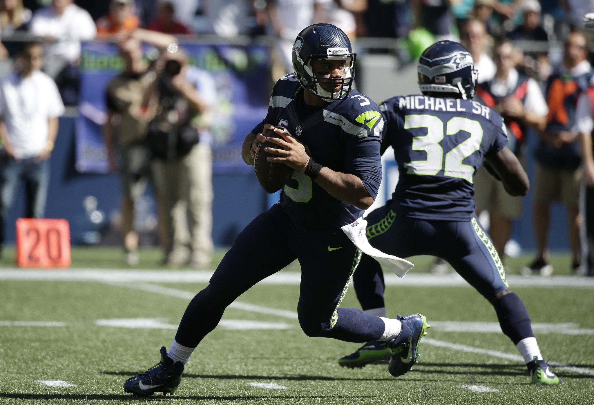 Miami missed on three great scoring chances. On fourth-and-1 at the Seattle 17 in the first quarter, Tannehill tried to draw the Seahawks offside before handing off to Arian Foster, who was stuffed at the line of scrimmage. On their next series, Kenny Stills got free behind Seattle’s secondary only to drop what would have been a sure touchdown. And in the third quarter, Andrew Franks’ 27-yard field goal attempt was blocked by Cassius Marsh.