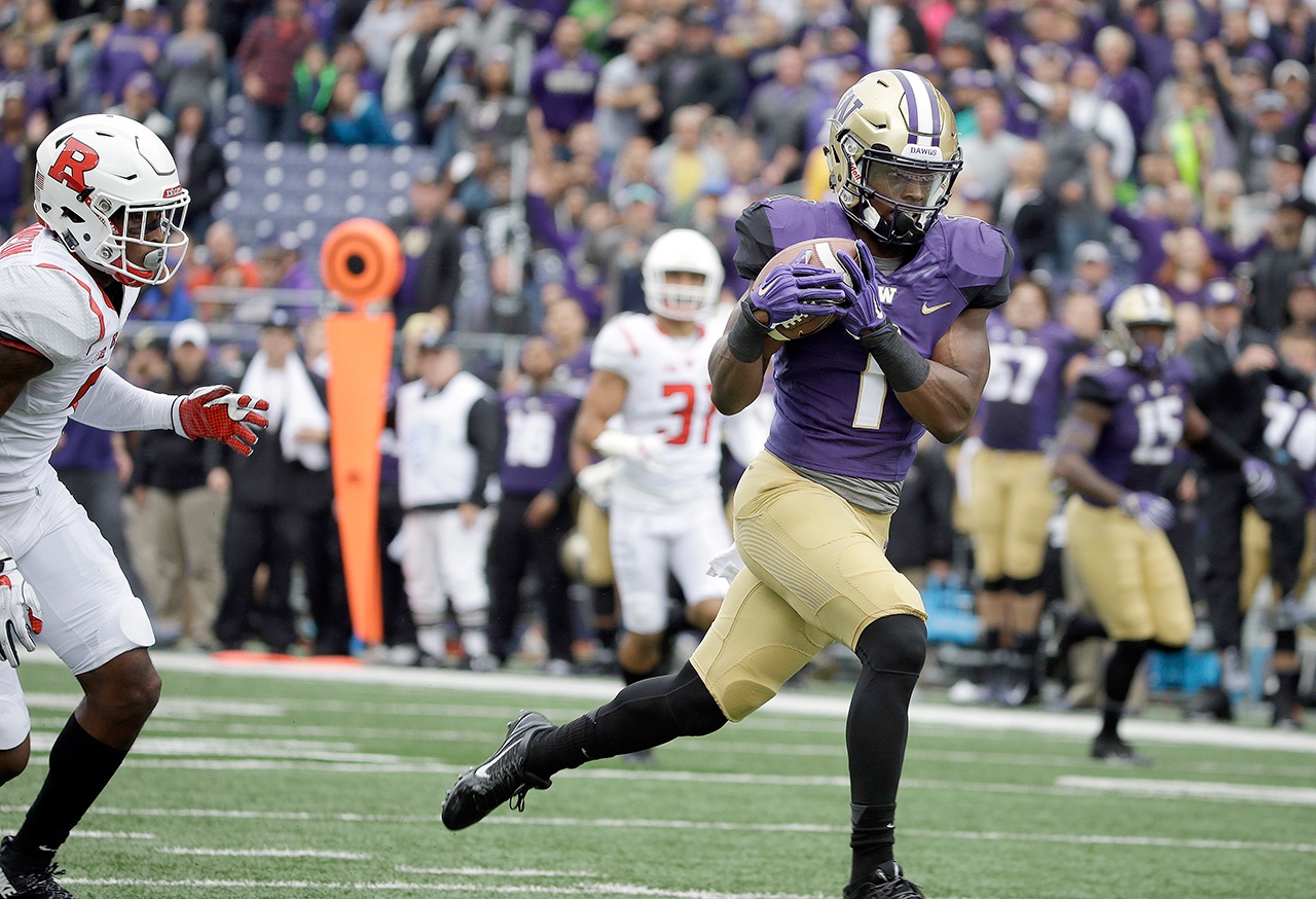 He was certainly good to start the season, hitting Chico McClatcher on a 43-yard touchdown on his second pass of the season, followed by TD throws of 38 and 50 yards to Ross as the Huskies burned Rutgers’ decision to play man coverage on the outside.