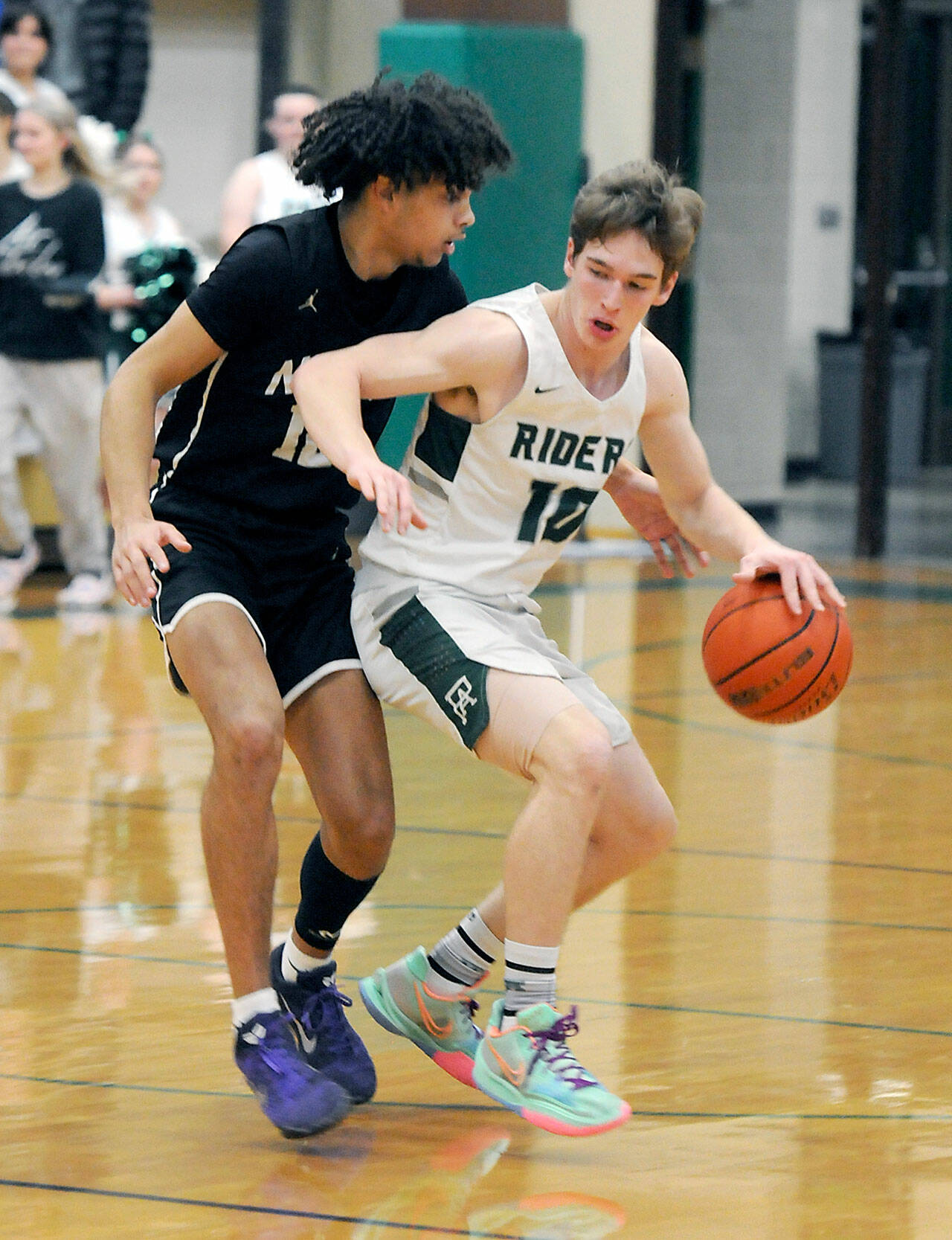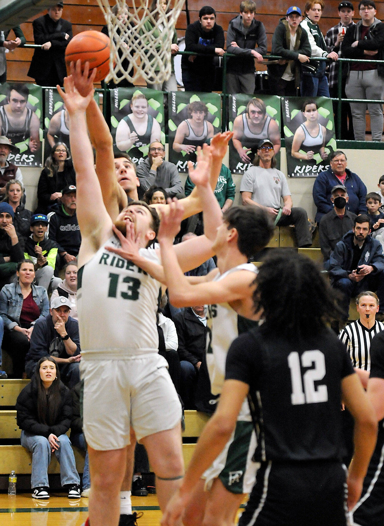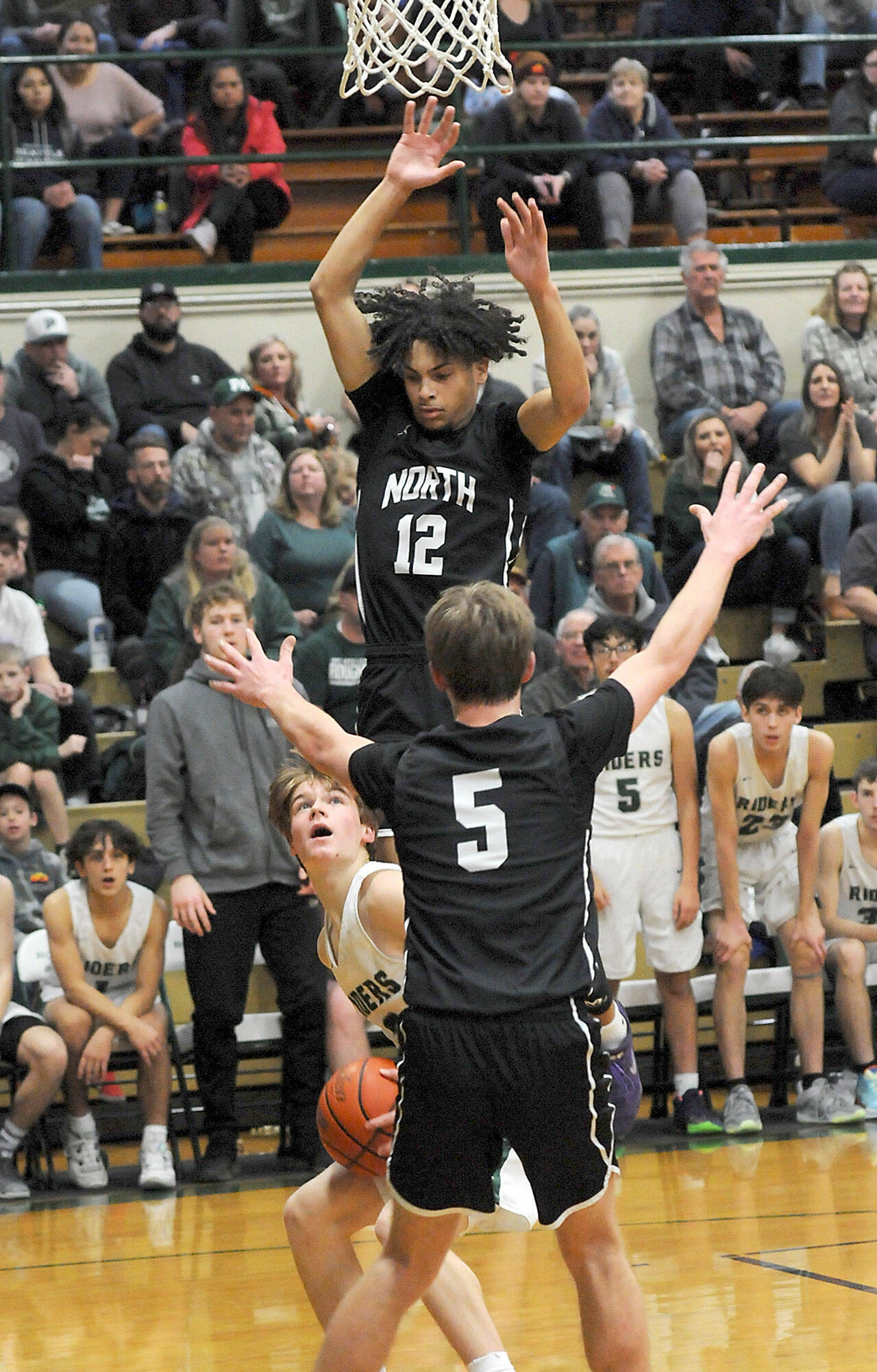 Port Angeles’ rally started with two late buckets by Parker Nickerson, including a drive to the rim in which he absorbed contact and laid the ball in at the buzzer as the Riders trailed 26-18 at the break.