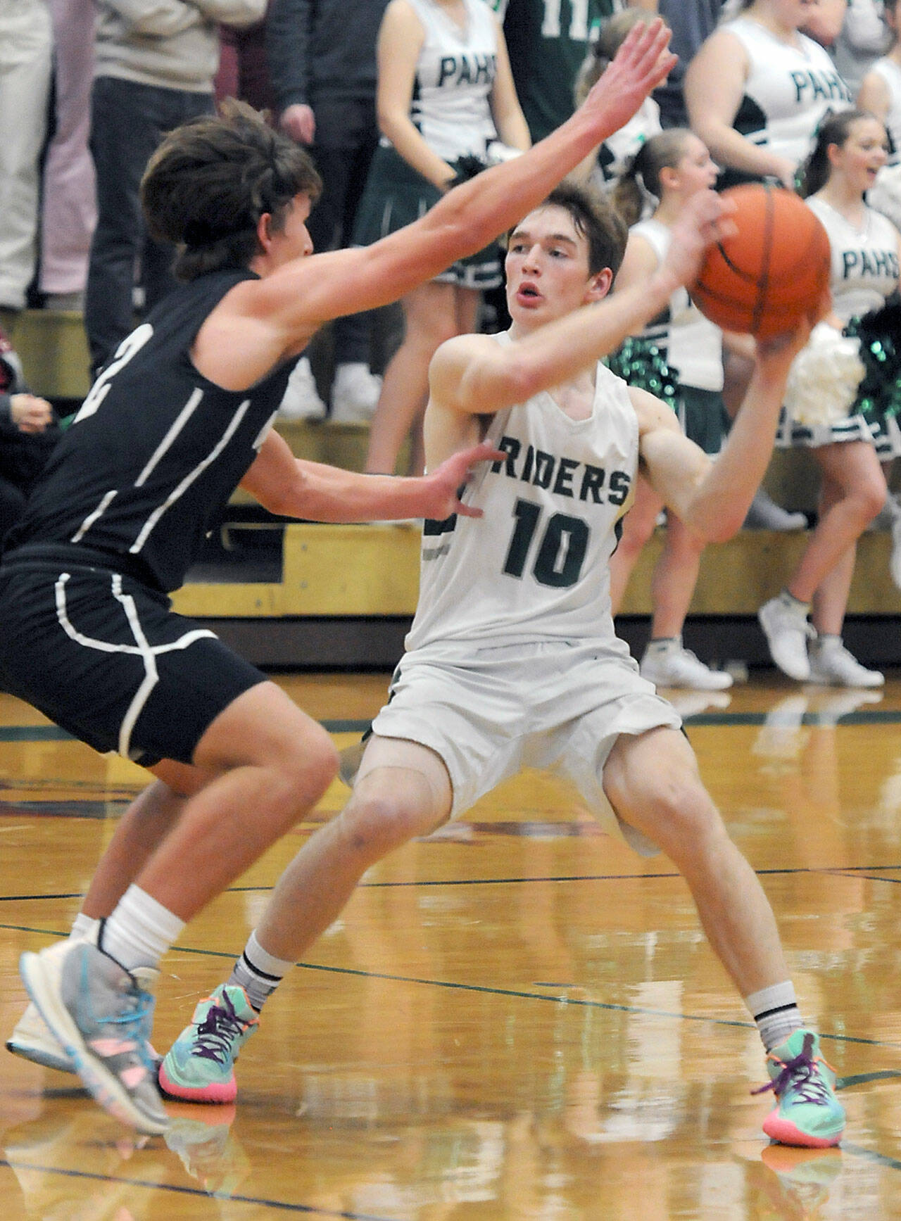 Riders senior Tyler Hunter led the way with 10 points in the third quarter, burying two 3-point baskets, including a buzzer-beater at the end of the third quarter to pull Port Angeles within 41-40.