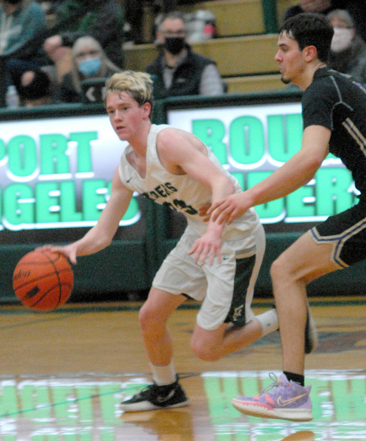 Port Angeles clamped down defensively and grew its lead to 68-52 with 4:04 to play but had to weather one final run from the defending state champions as a quick 8-0 Vikings run cut the Riders’ lead to 68-60 with 2:33 remaining.