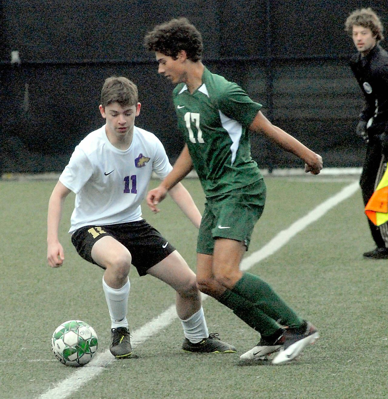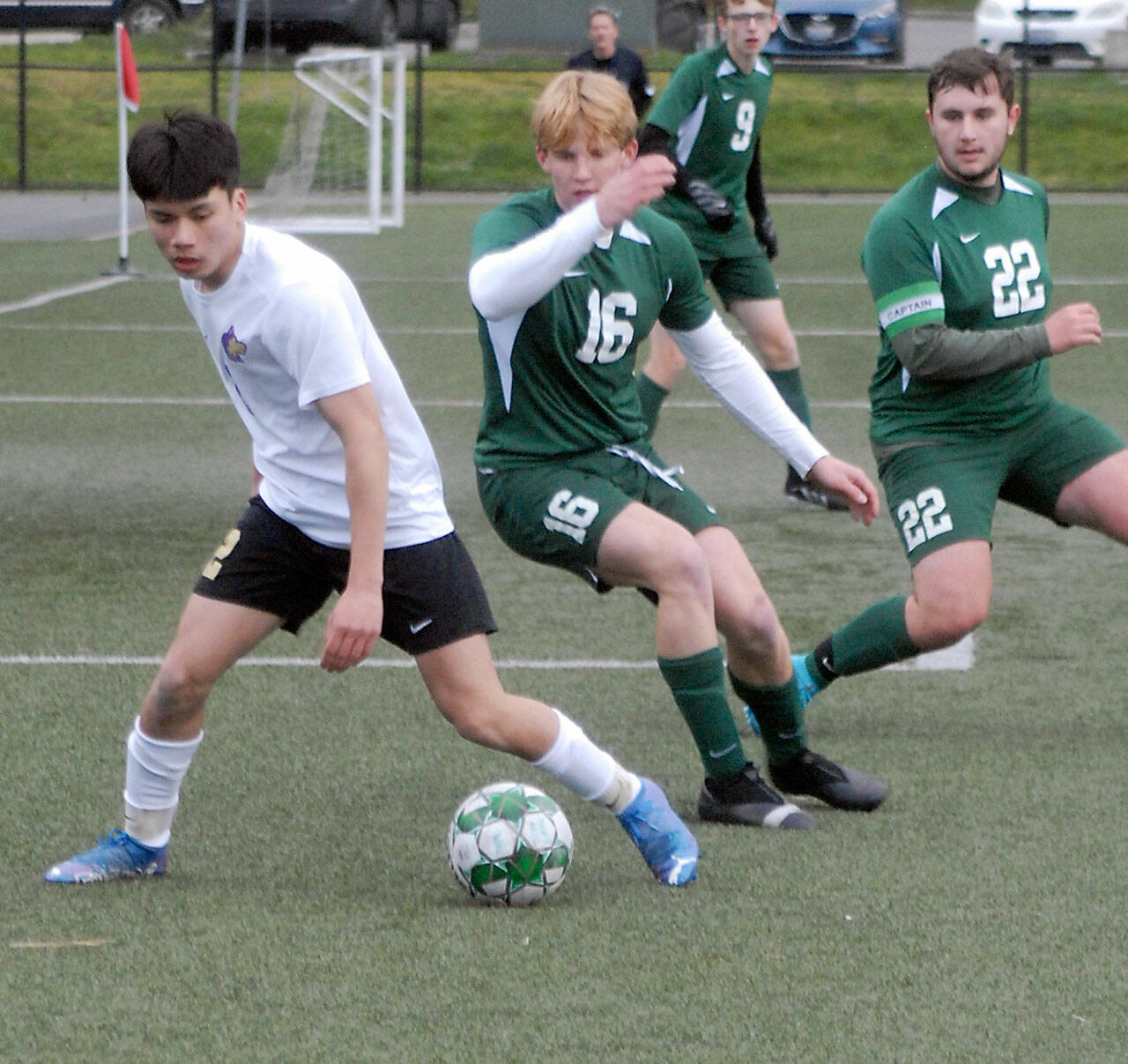 Each team had chances in the early going as Brandon Wagner clanged one off the crossbar for Sequim and Josiah Long’s low shot to the near post was swallowed up by Wolves’ goalkeeper Jack Van De Wege.