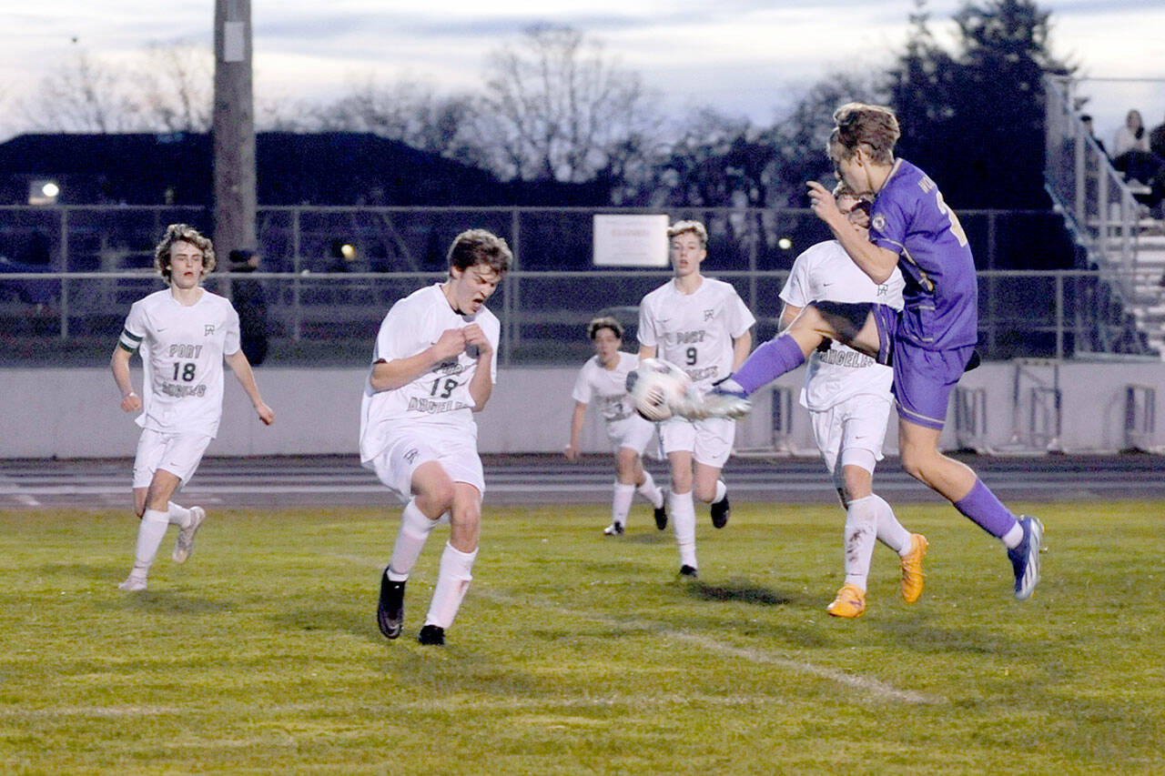 Port Angeles scratched one back in the 37th minute when a pretty connection between freshman Kanyon Anderson and sophomore Matthew Miller led to a breakaway and a penalty kick.
