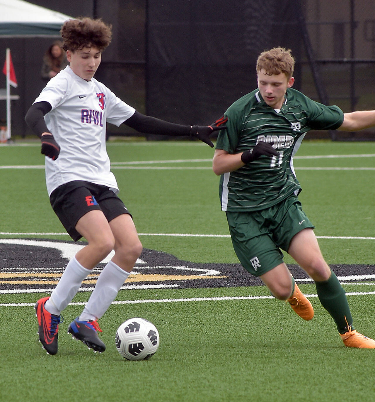East Jefferson’s Eduardo Martinez had a golden opportunity in the 19th minute as the Rivals had the Port Angeles defenders and goalkeeper out of position, leaving the net wide open. Martinez’s shot from 20 yards out went just over the crossbar, however, as the Riders dodged a bullet.