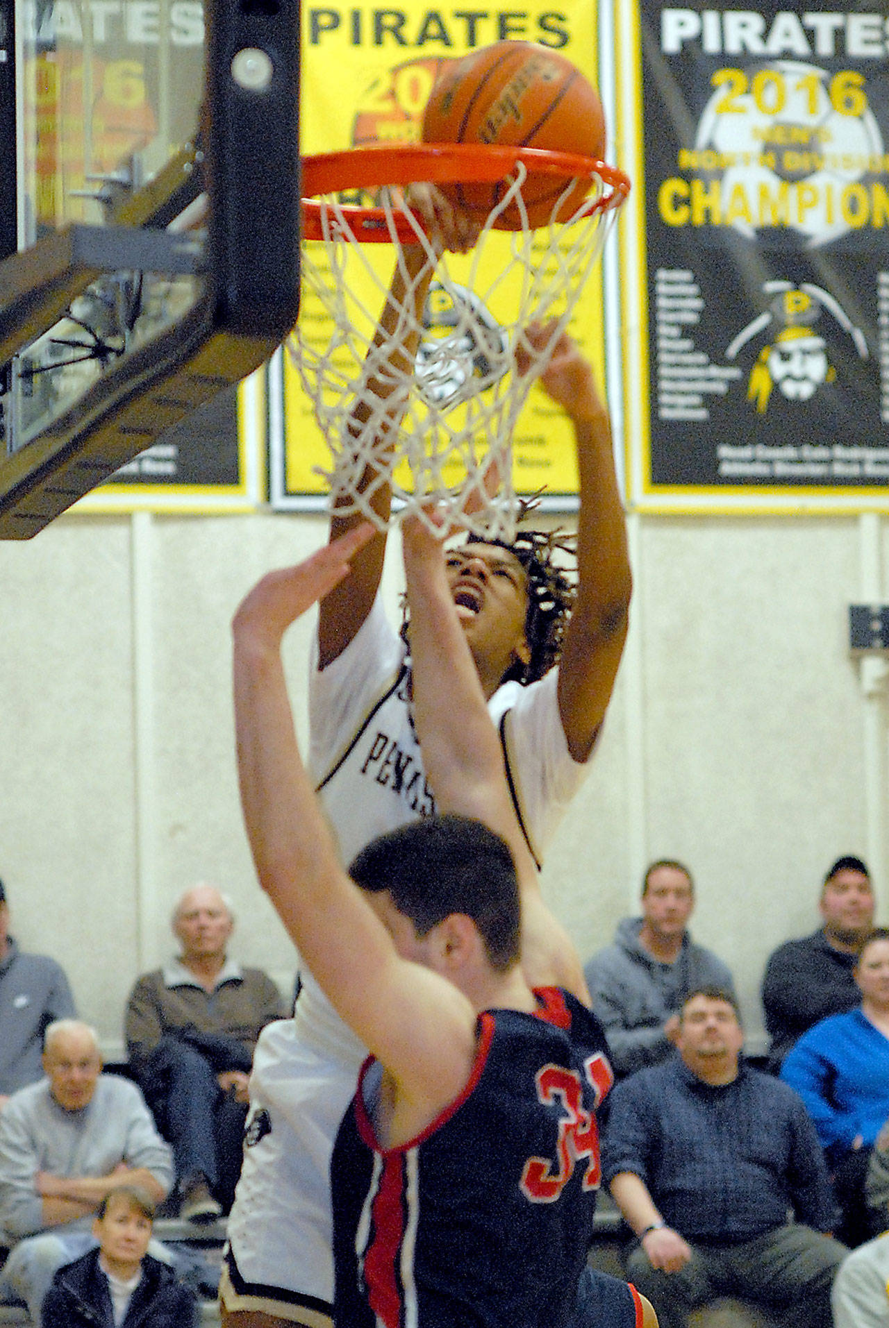 The Pirates’ Colby Jackson was huge at the end of Saturday’s game, with a 3-pointer, a rebound, a steal and two free throws all in the final 2:23. Marky Adams and Trent Warren shot 4 for 4 on their free throws down the stretch to help Jackson and Peninsula seal the win.