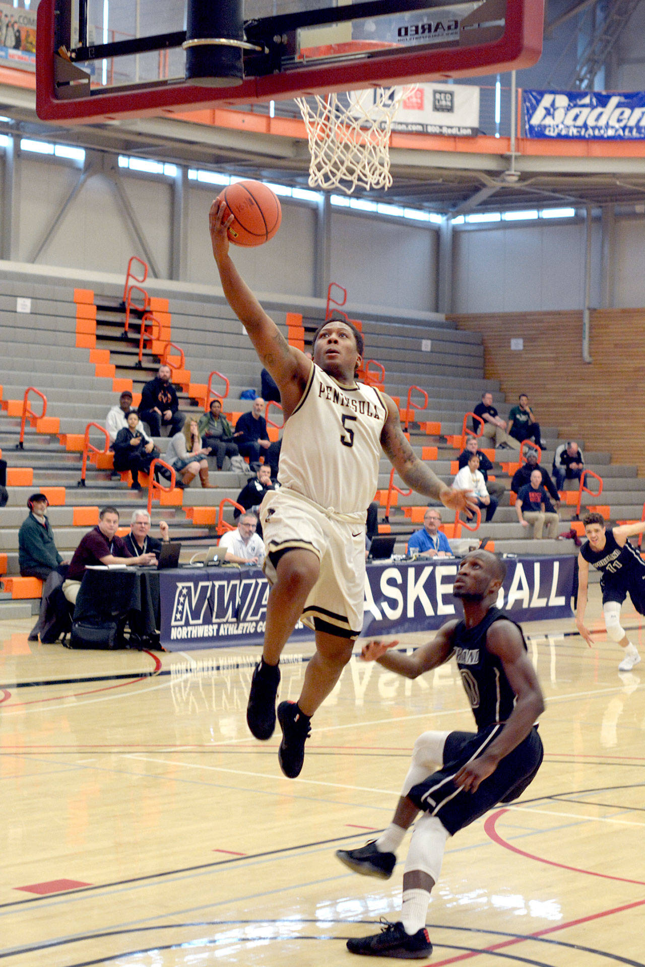 Peninsula, which defeated Portland 78-65 in late November, continued the momentum into the second with a 10-3 run, taking a 38-33 lead on Kevin Baker’s inside basket with 17:23 remaining.