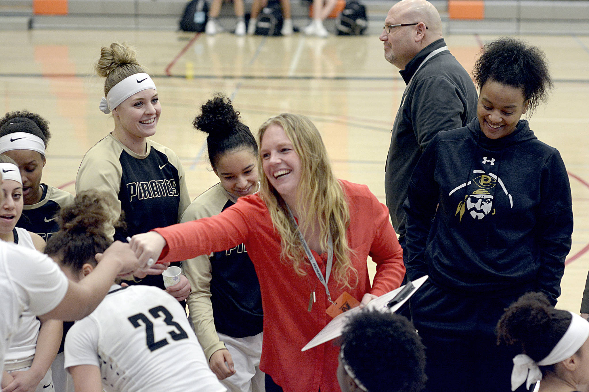 The Pirates led 53-45 entering the final period, but scored just two points over a span of 4:05 as the Titans closed within 61-56 on two free throws by Sidra Malik with 1:53 remaining.