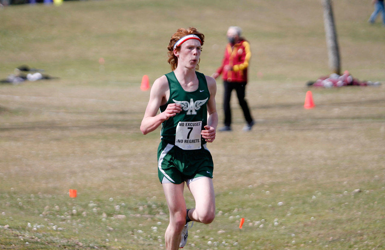 The race at Battle Point Park on Bainbridge Island featured the top seven runners from 11 schools thrown together into the Olympic League this COVID-19-affected season — Port Angeles, Sequim, East Jefferson, Klahowya, Central Kitsap, Bainbridge, North Kitsap, South Kitsap, North Mason, Bremerton and Olympic. This is the only postseason the cross country runners will get this shortened season.