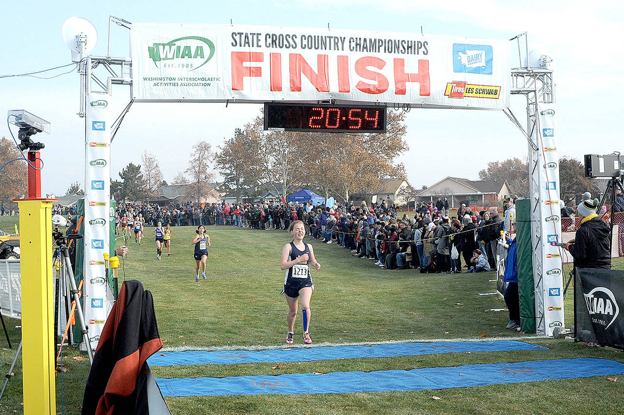 Port Angeles’ Lauren Larson finished fifth in the state with a time of 18 minutes, 41.2 seconds to go along with her fourth-place finish last year. She just edged out Sequim’s Riley Pyeatt, who finished sixth with a time of 18:46.1. Pyeatt is the Olympic League 2A and West Central District III 2A champion.
