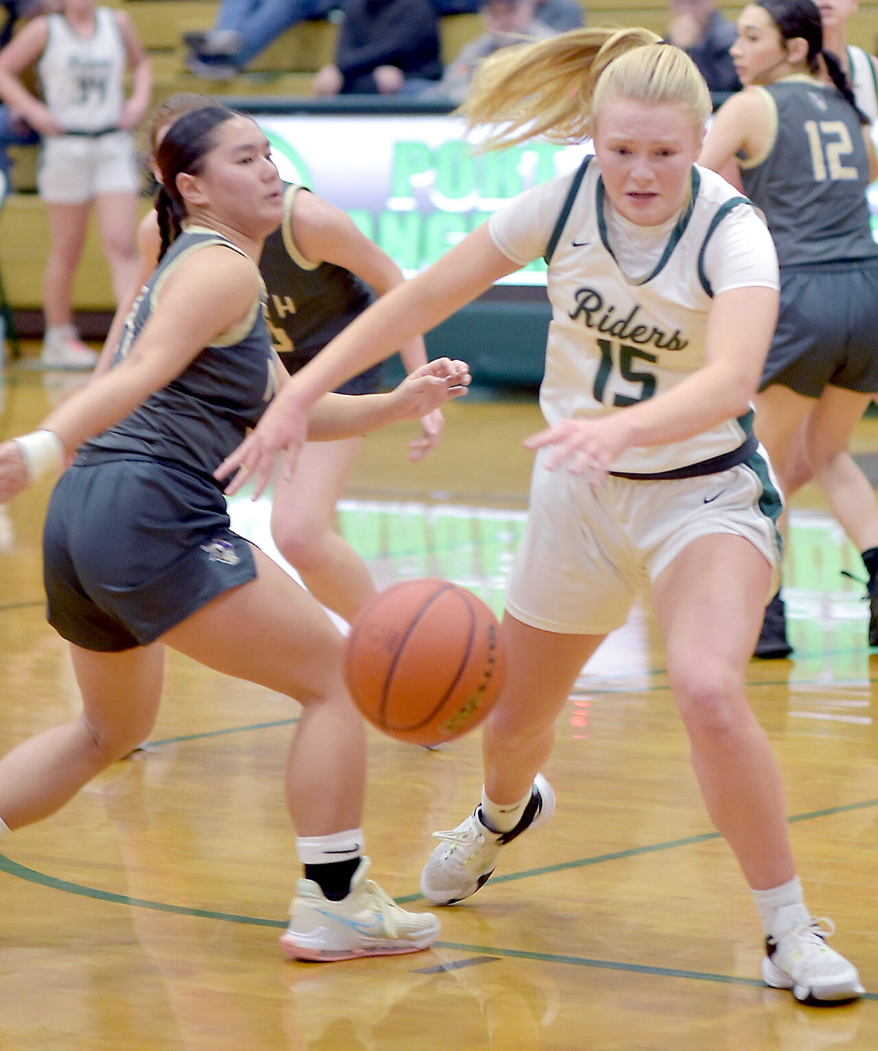 PORT ANGELES — The Port Angeles girls basketball team’s defensive man pressure was up to the task, forcing North Kitsap turnovers early and often and the Roughriders, minus a slow second quarter, controlled both ends of the court in a 46-32 girls basketball win Tuesday.
