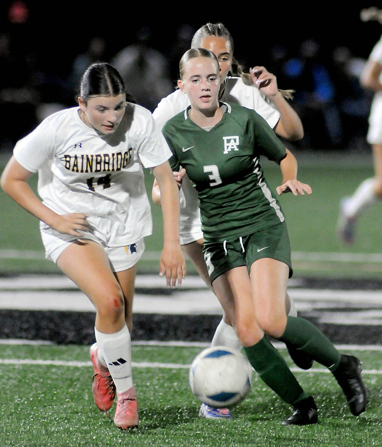 PORT ANGELES — Down a goal after playing a defensive-minded first half, Port Angeles decided to try and chase down some goals against Olympic League power Bainbridge, a strategy that ultimately provided more opportunities for both teams in a 4-0 Spartans girls soccer win at Wally Sigmar Field.