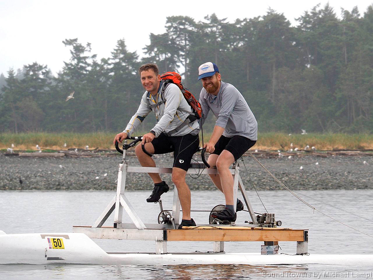 Vessels entered in the race ranged from traditional racing kayaks and rowing shells to canoes, outriggers, dragon boats, a standup paddleboarder and a pedal-powered tandem bicycle design.