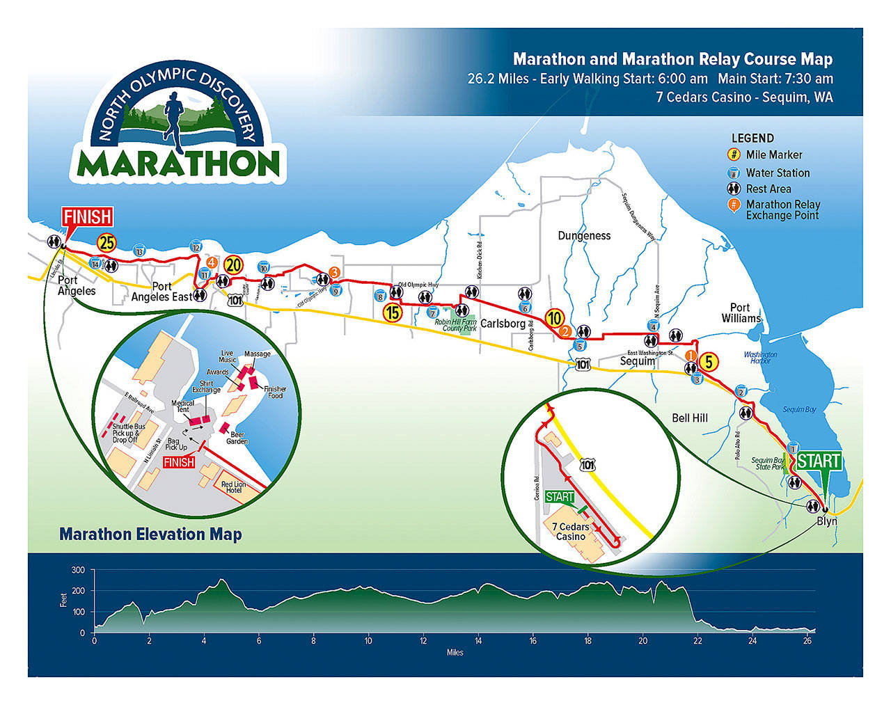 The start of the point-to-point marathon, in its 16th year, as well as the marathon walk and the marathon relay will begin at 7 Cedars Casino in Blyn.