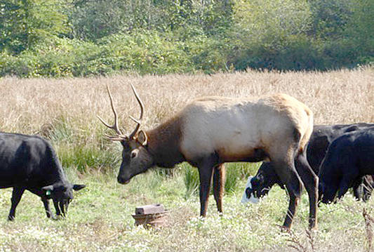 That’s why the recent bull elk spotted with a herd of domestic cattle near Quilcene spurred my attention.