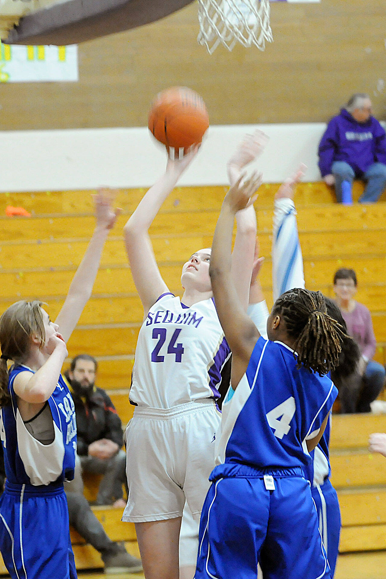 Libby Turella scored seven points and grabbed seven rebounds, while teammate Dani Herman hauled down seven boards with six points.