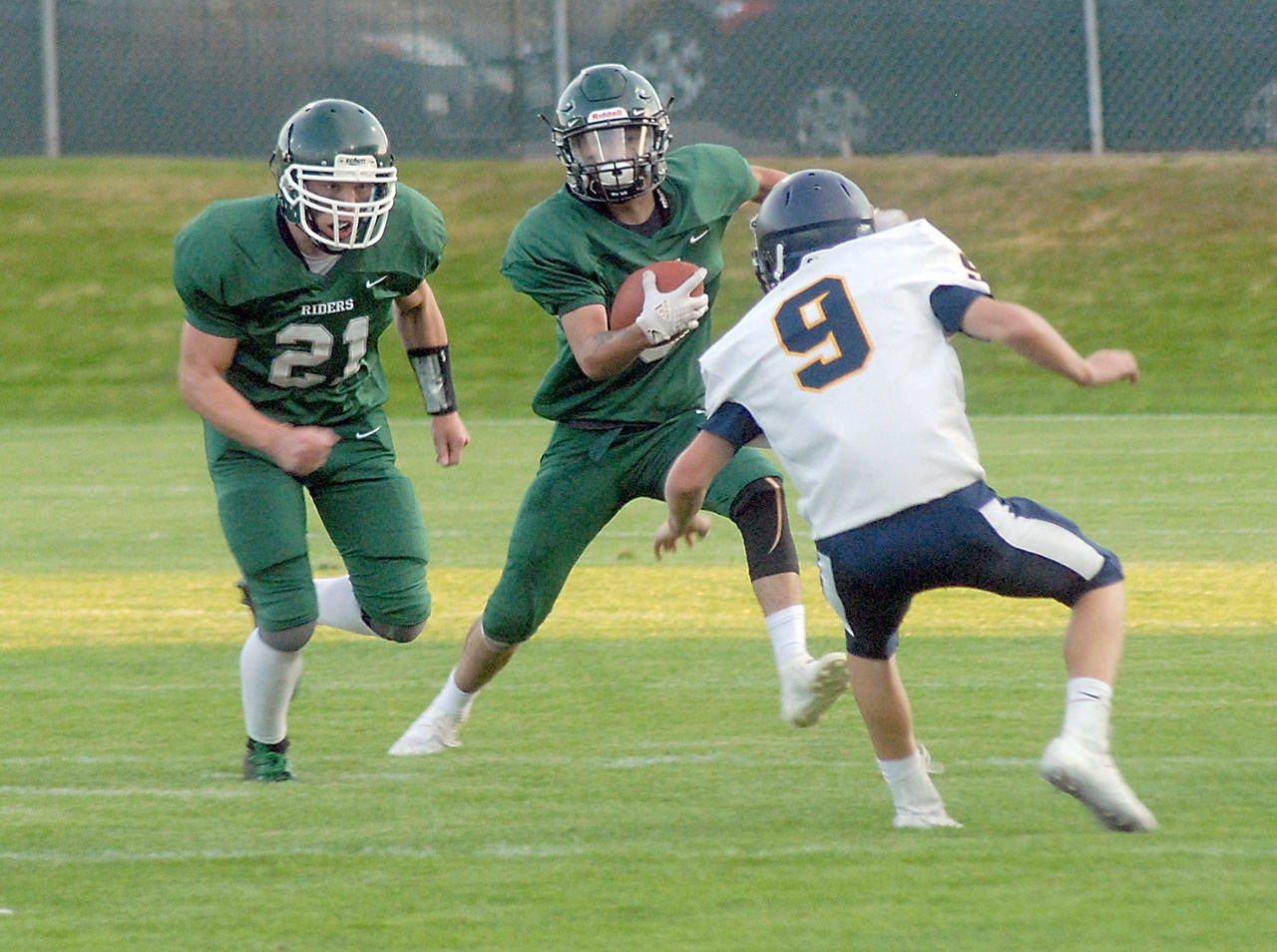 In his first ever game of varsity football, Jacob Felton played well defensively, getting a big sack on Windle in the first half. Nolan Hughes and Treyton Walde also had sacks for the Riders.