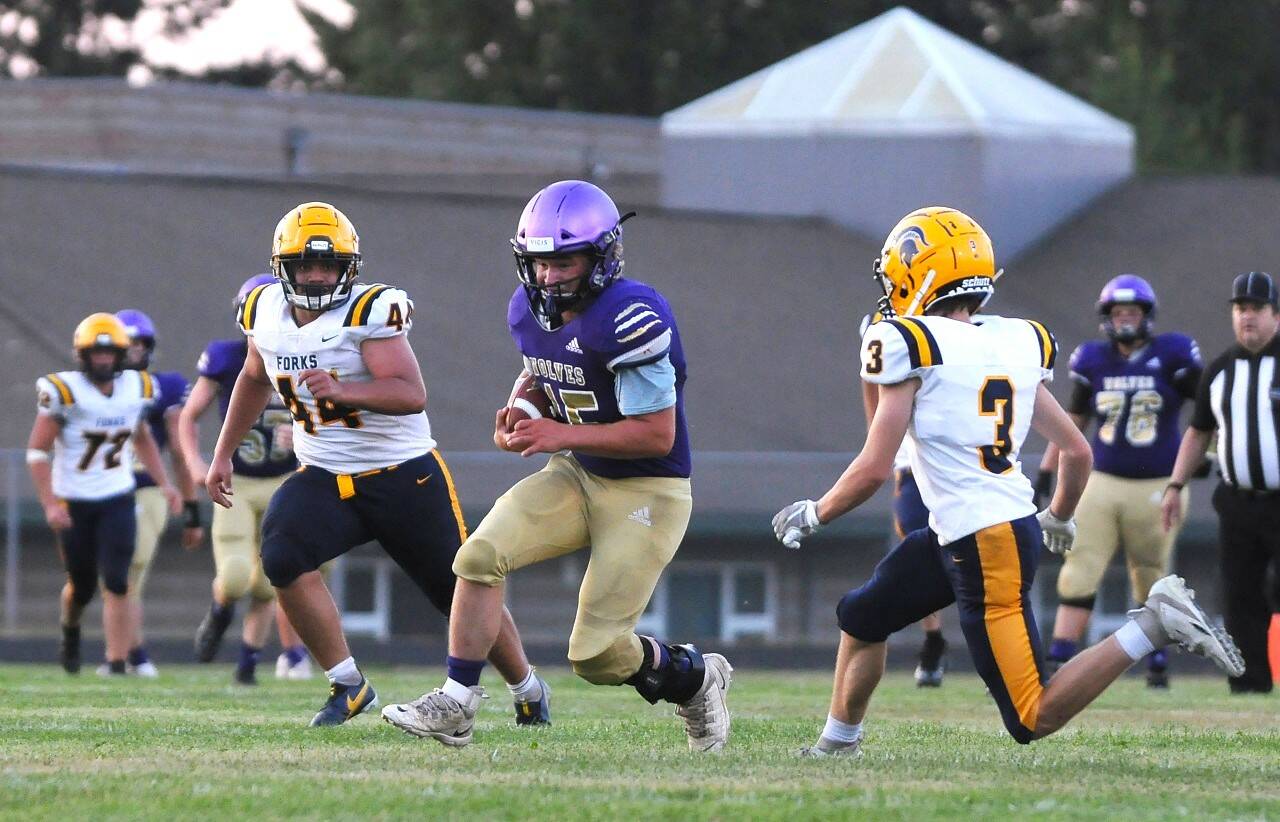 SEQUIM — Forks’ power rushing scheme gobbled up yardage inside and out offensively, its defense produced four Sequim turnovers, including an interception return for touchdown and the Spartans battered the Wolves 32-14 on Friday night.