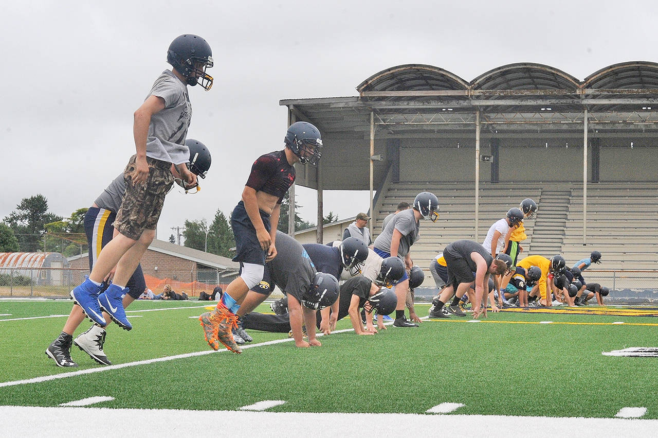 PORT ANGELES — North Olympic Peninsula high school football teams from Neah Bay to Quilcene opened preparations for the 2017 season sans pads and in some cases helmets, for the first day of practice Wednesday.