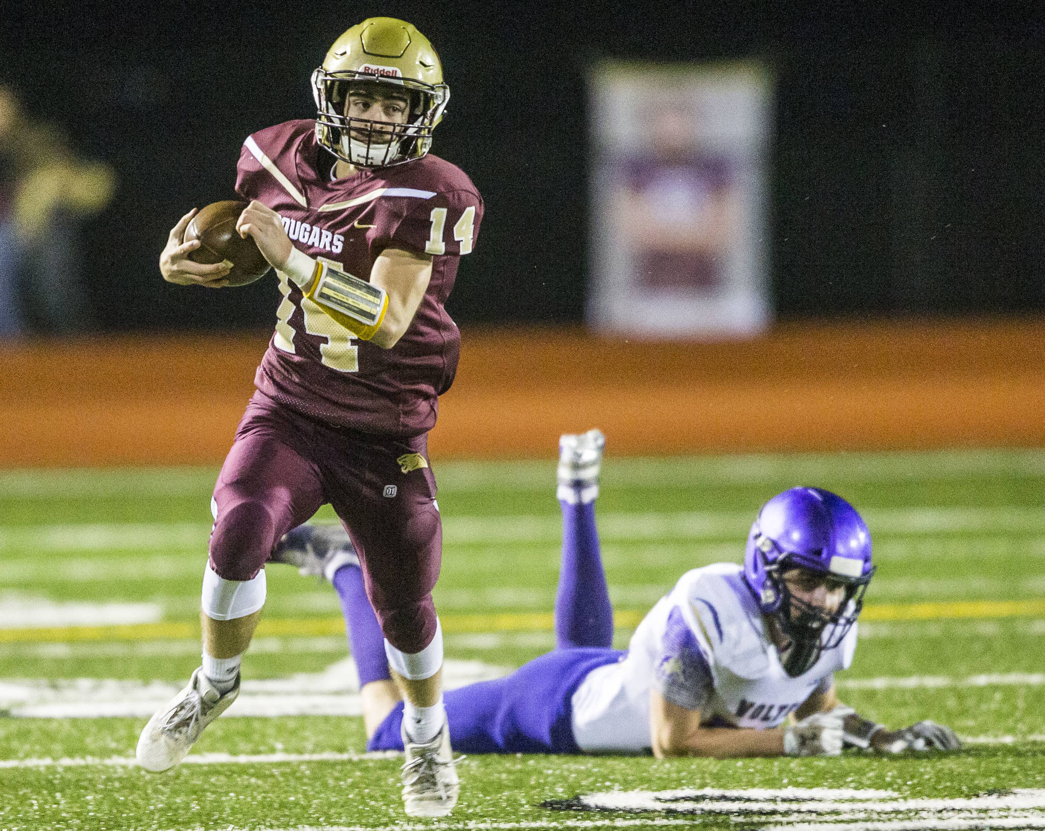 Down 14-6 and facing fourth and 4 from Lakewood’s 34-yard line, Sequim (9-2) elected to go for it on its second drive. The Wolves were looking to force an offsides by the Cougars — and did — but not after calling a timeout as the play clock neared zero. The flag was waived off and Ward was stuffed on a run up the middle out of the timeout.
