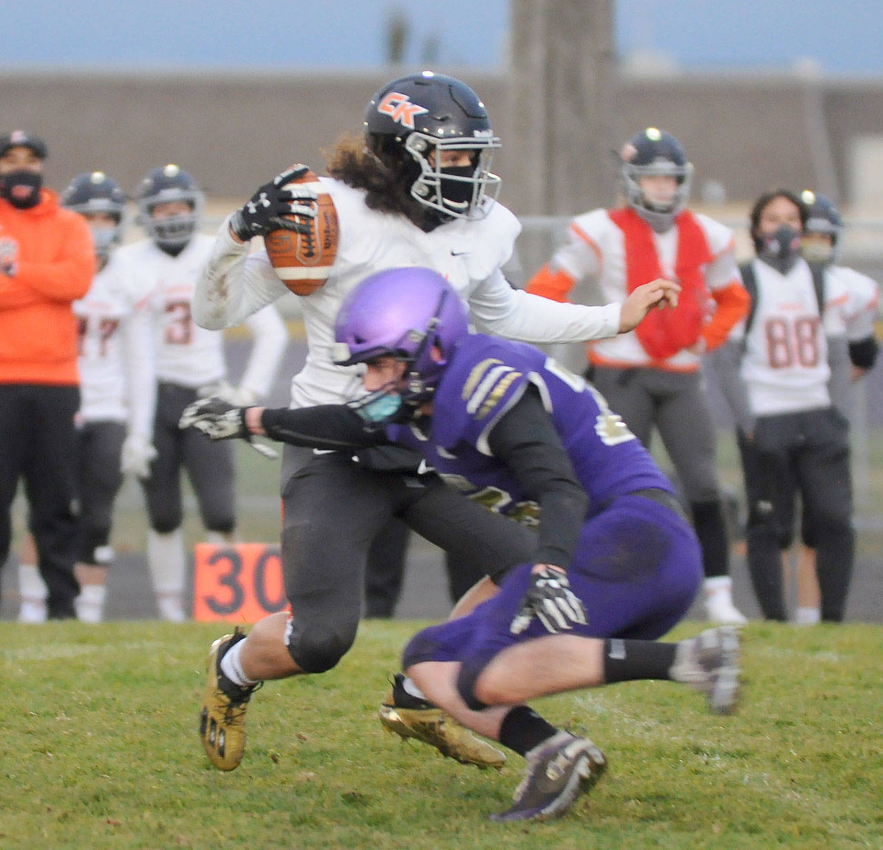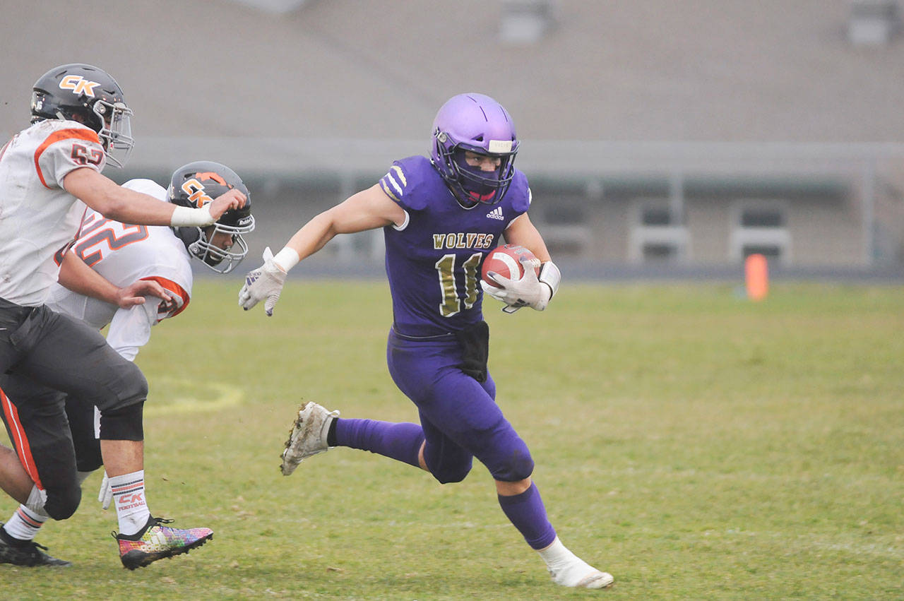 Wiker served as Sequim’s primary running option, plowing into the Central Kitsap defense for 130 yards and two scores on 22 carries.