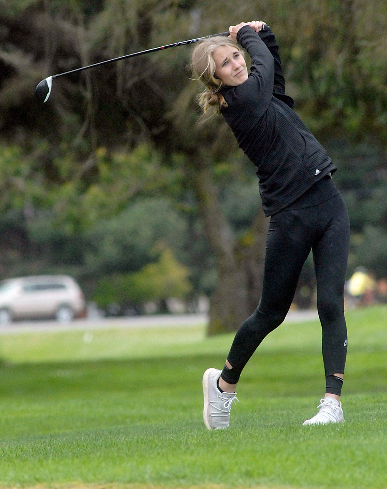 East Jefferson’s Alyssa Vandenberg was 16th with a 106, leading her team. Sequim’s JoNeil Hill cracked the top 20, coming in 19th with a 111.